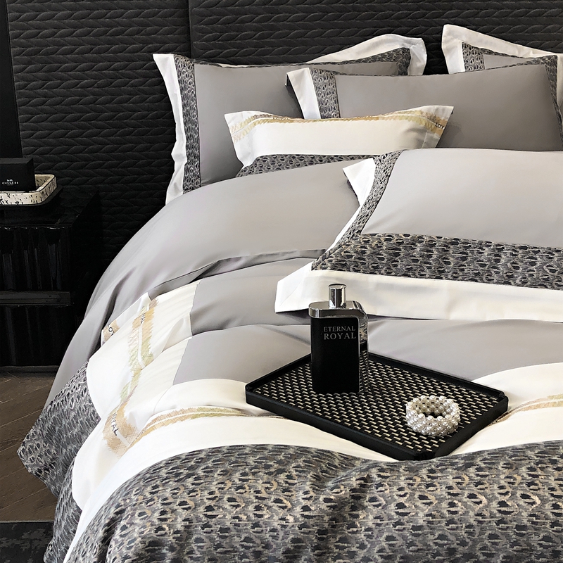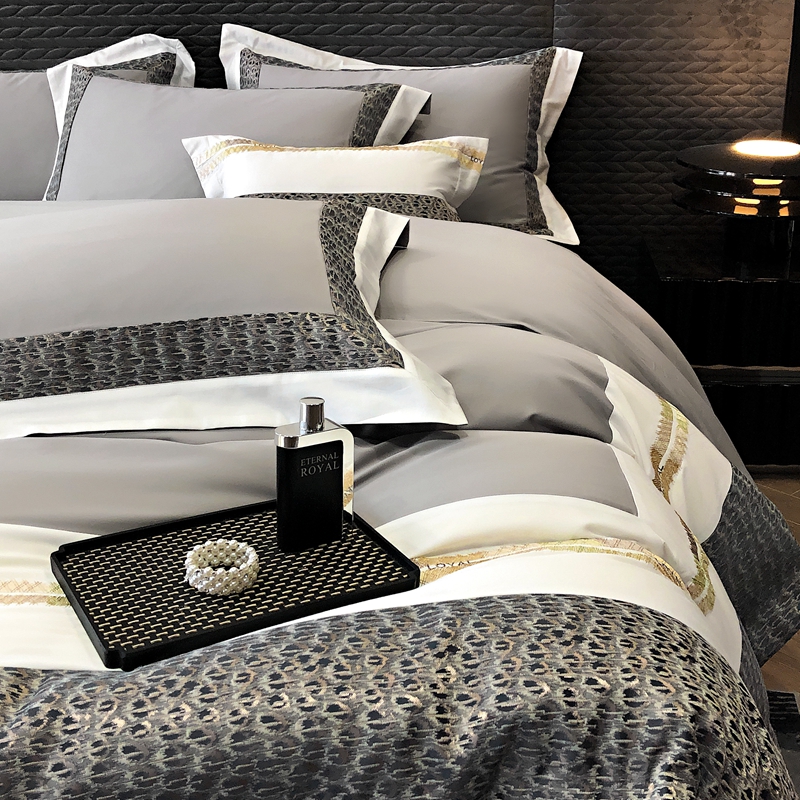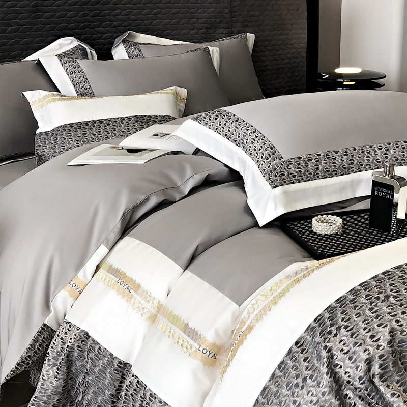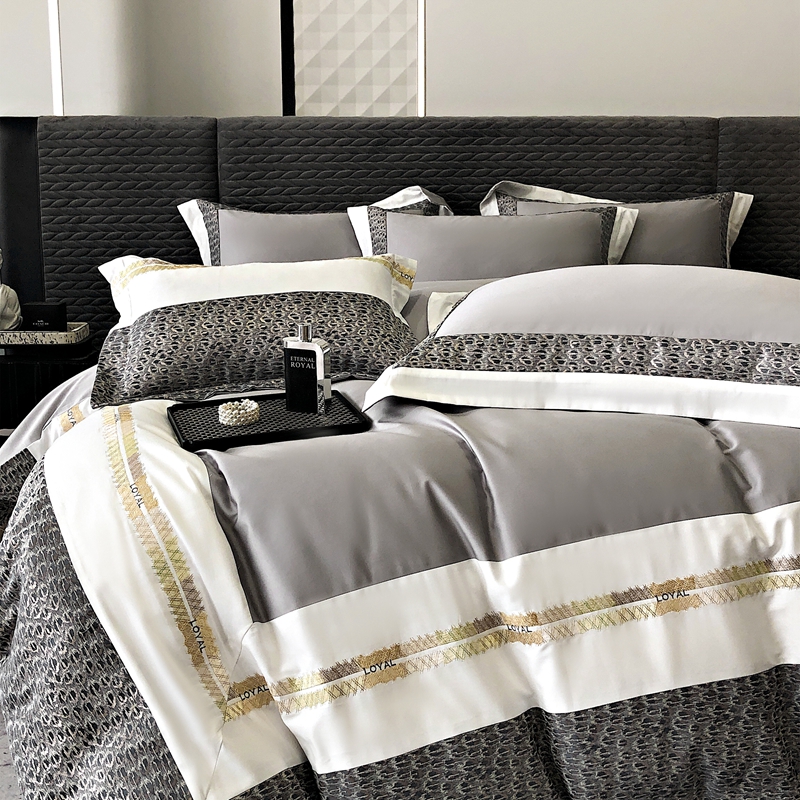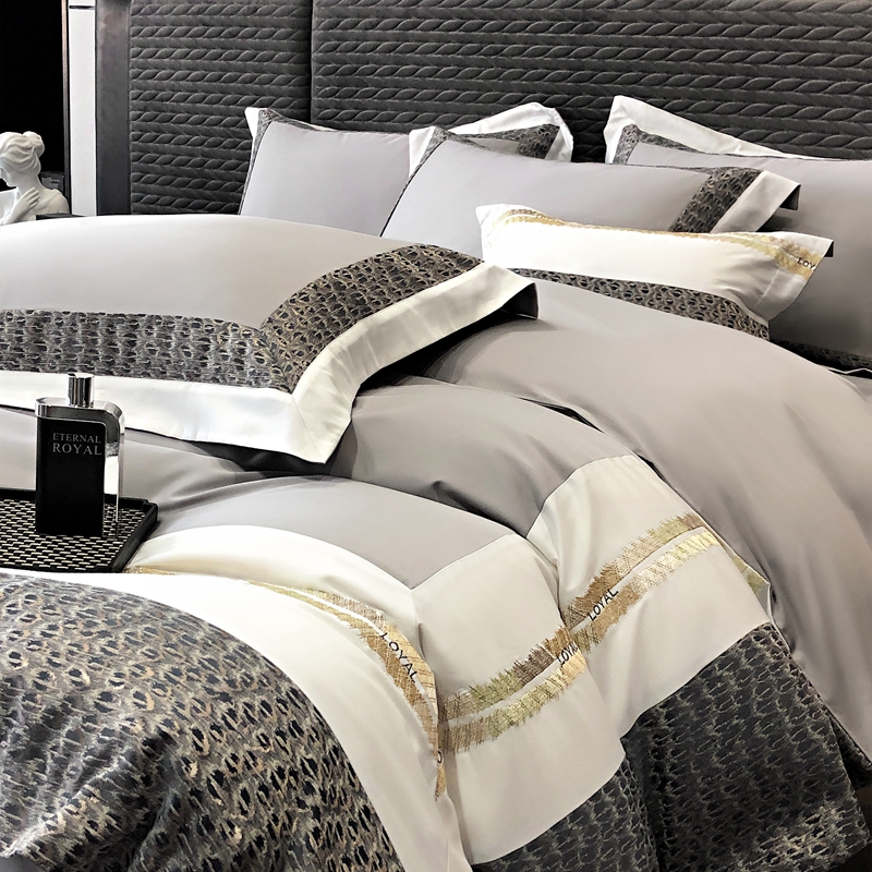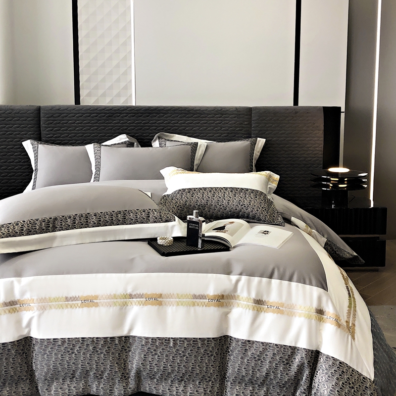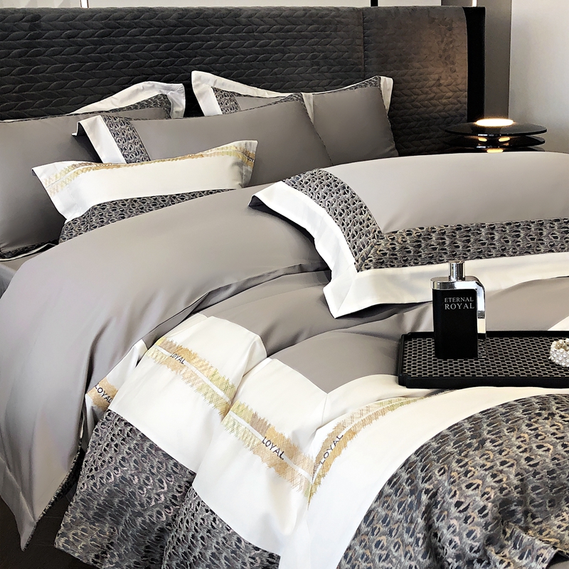 博纳家纺 2024新款13372喷气双面纯棉轻奢酒店风四件套-繁华 高级灰