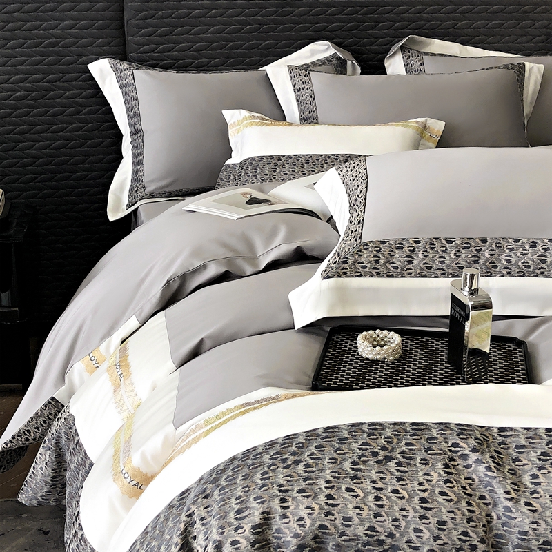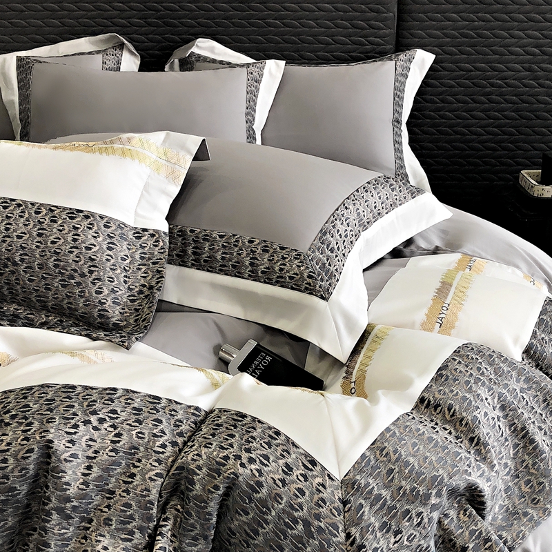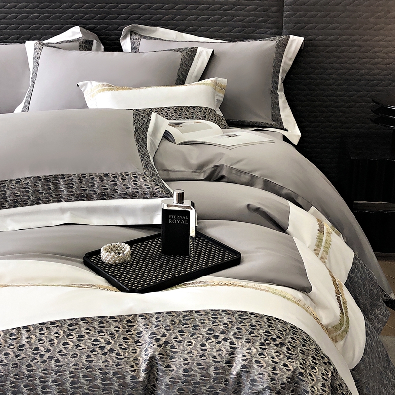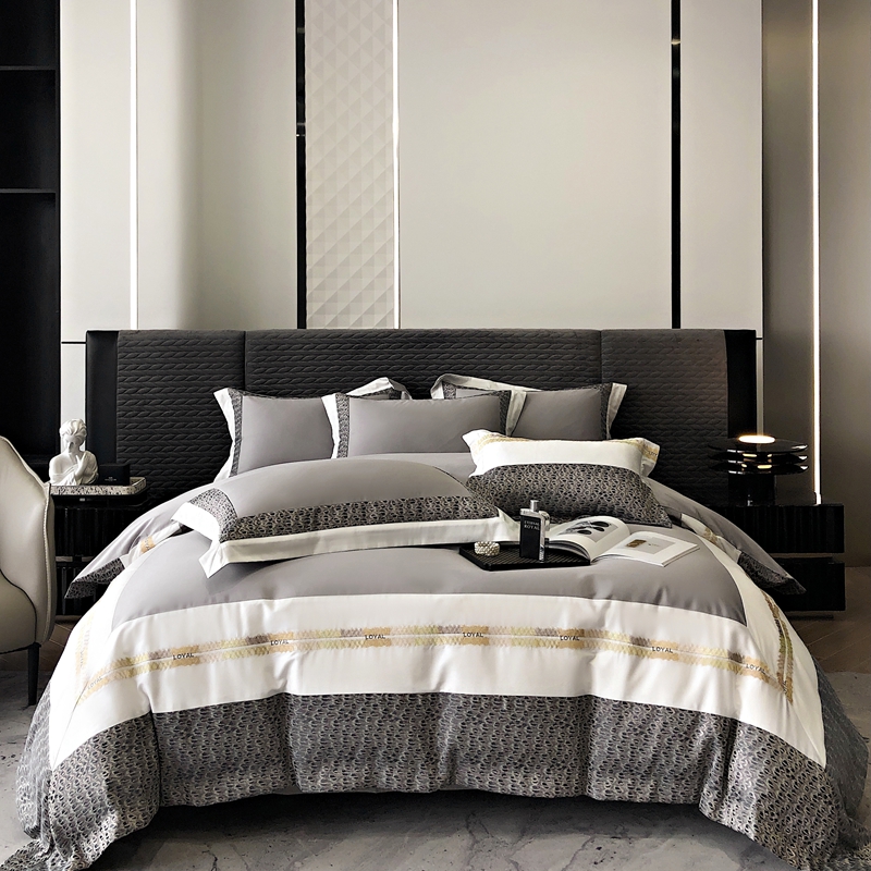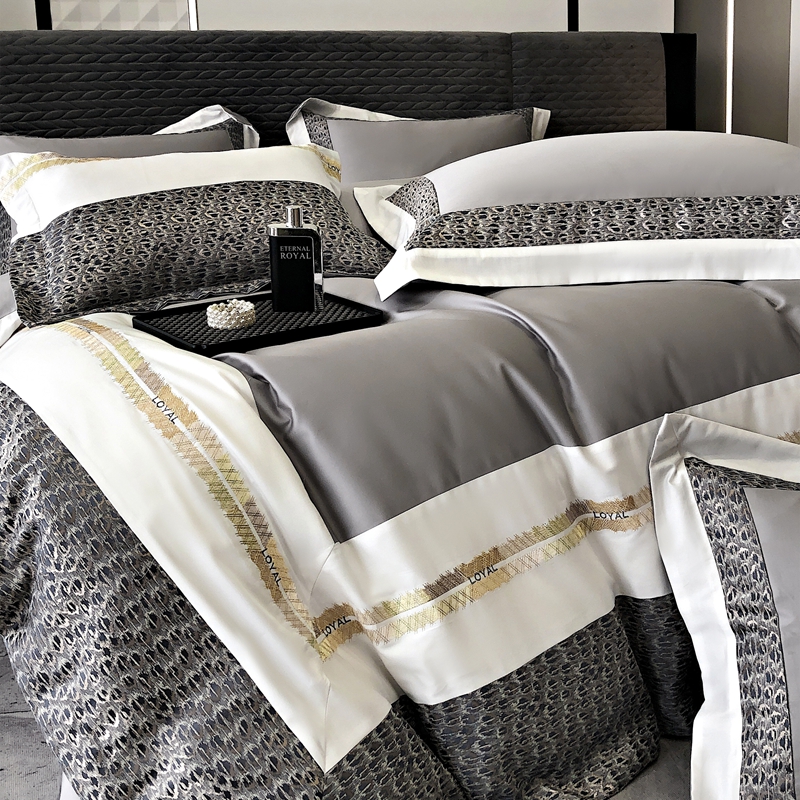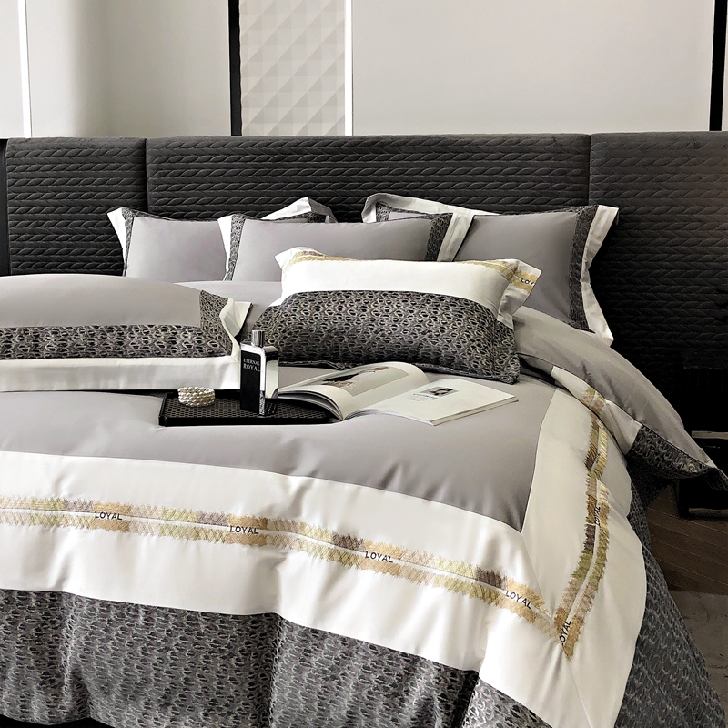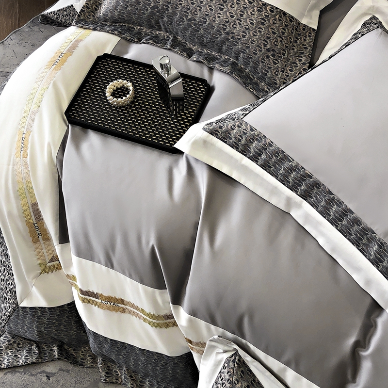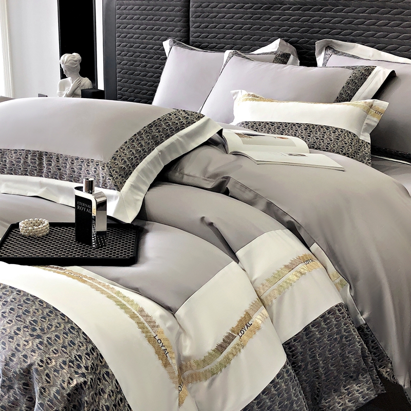 博纳家纺 2024新款13372喷气双面纯棉轻奢酒店风四件套-繁华 高级灰