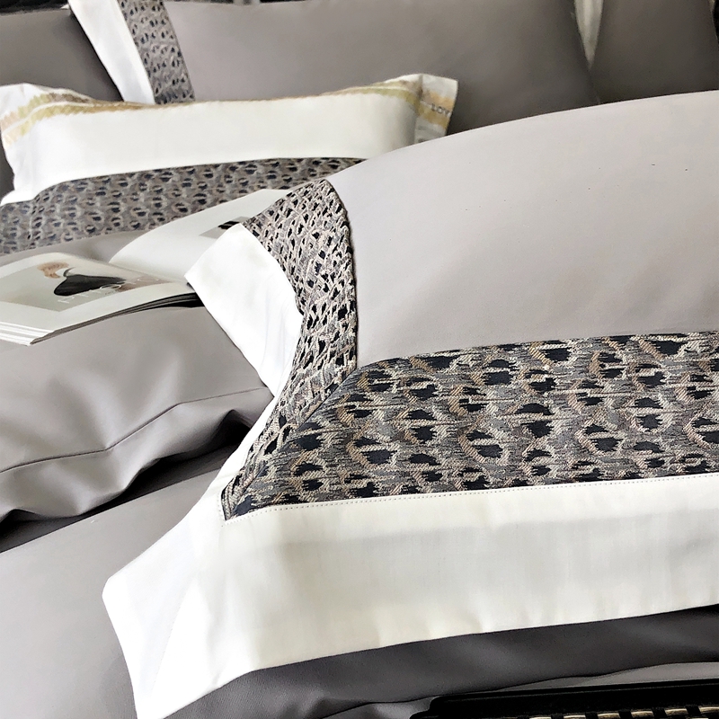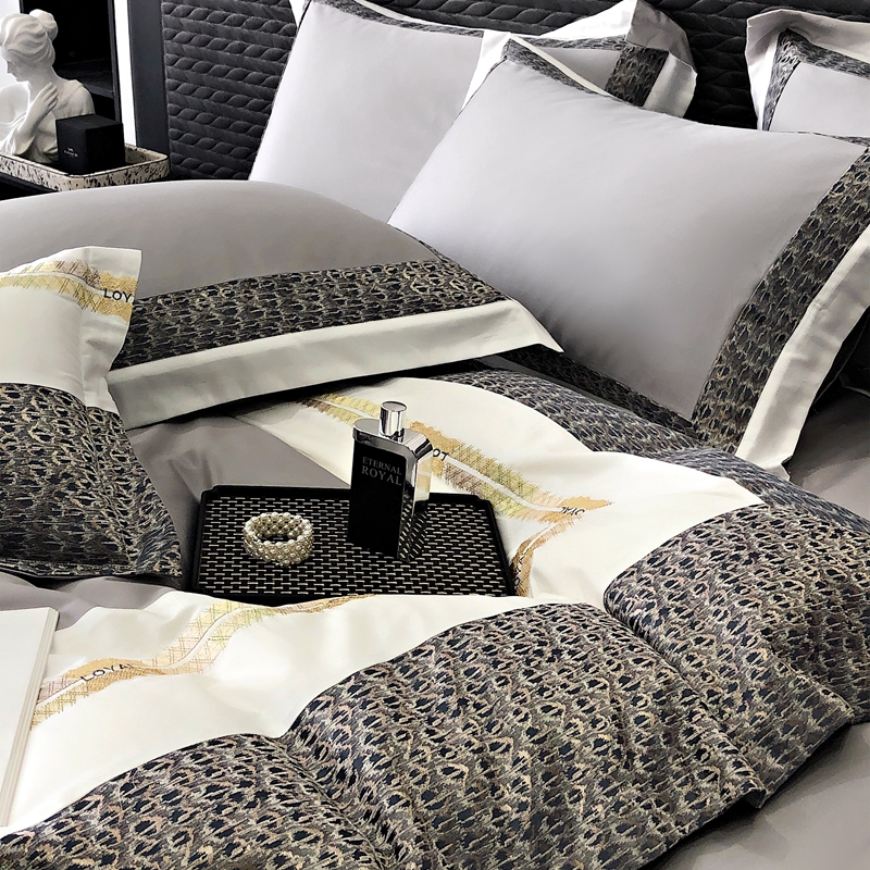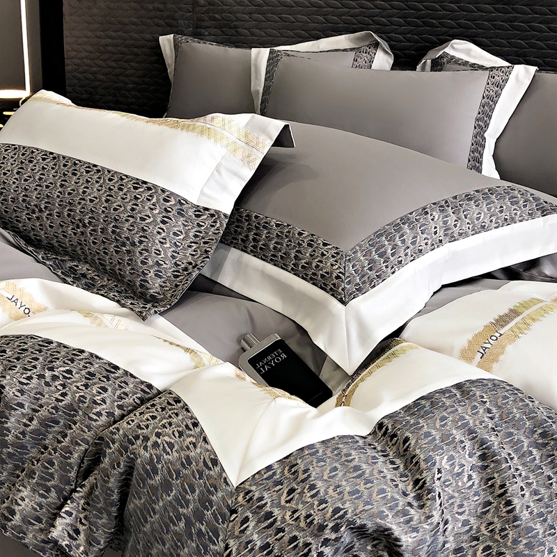 商品名称:博纳家纺 2024新款13372喷气双面纯棉轻奢酒店风四件套-繁华 高级灰