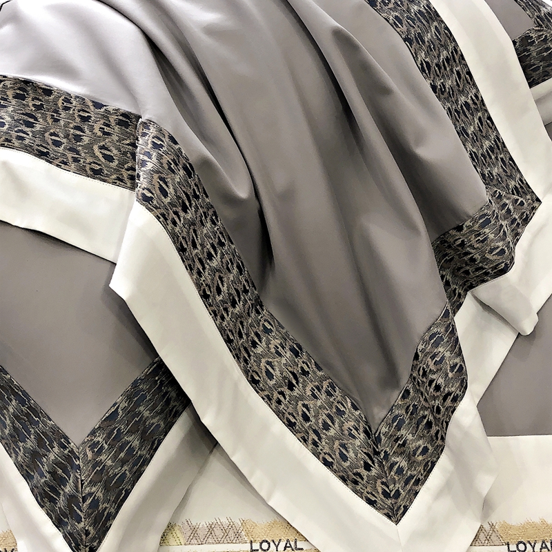 (总)博纳家纺 2025新款双色宽边高级简奢款四件套-维多利亚,高级灰,咖色,香槟,象牙白