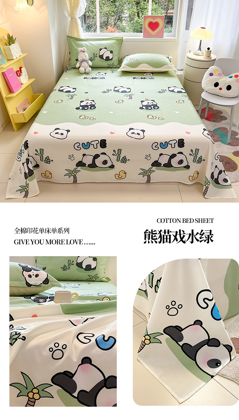 绵庭家纺 2024新款AB版12868全棉印花单床单 熊猫戏水绿