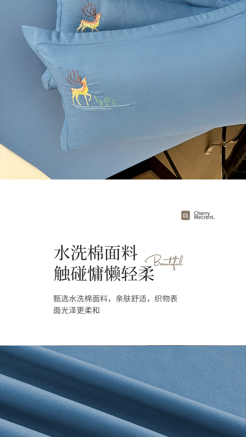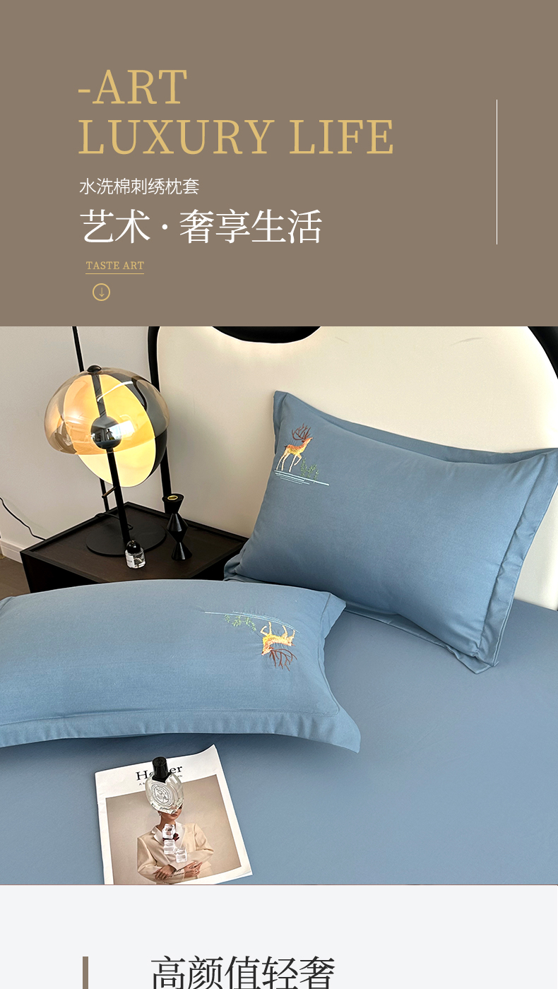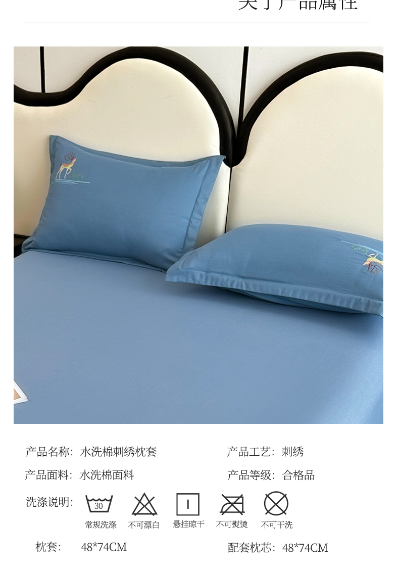 商品名称:(总)北辰 2024新款小鹿枕套水洗棉刺绣枕套