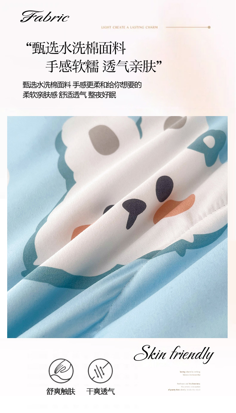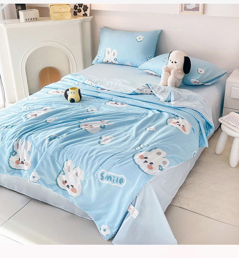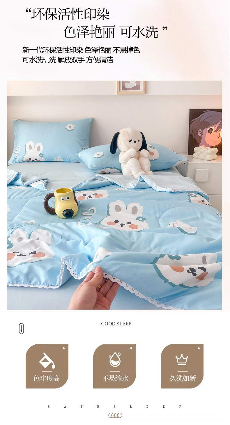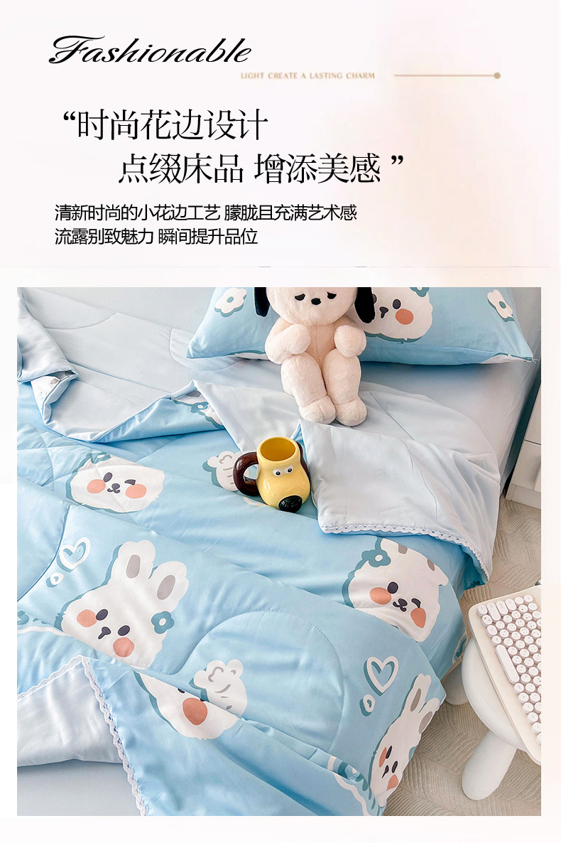 倾慕家纺 新款A类小清新水洗棉小花边夏被系列 蓝白小兔