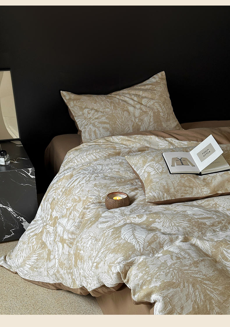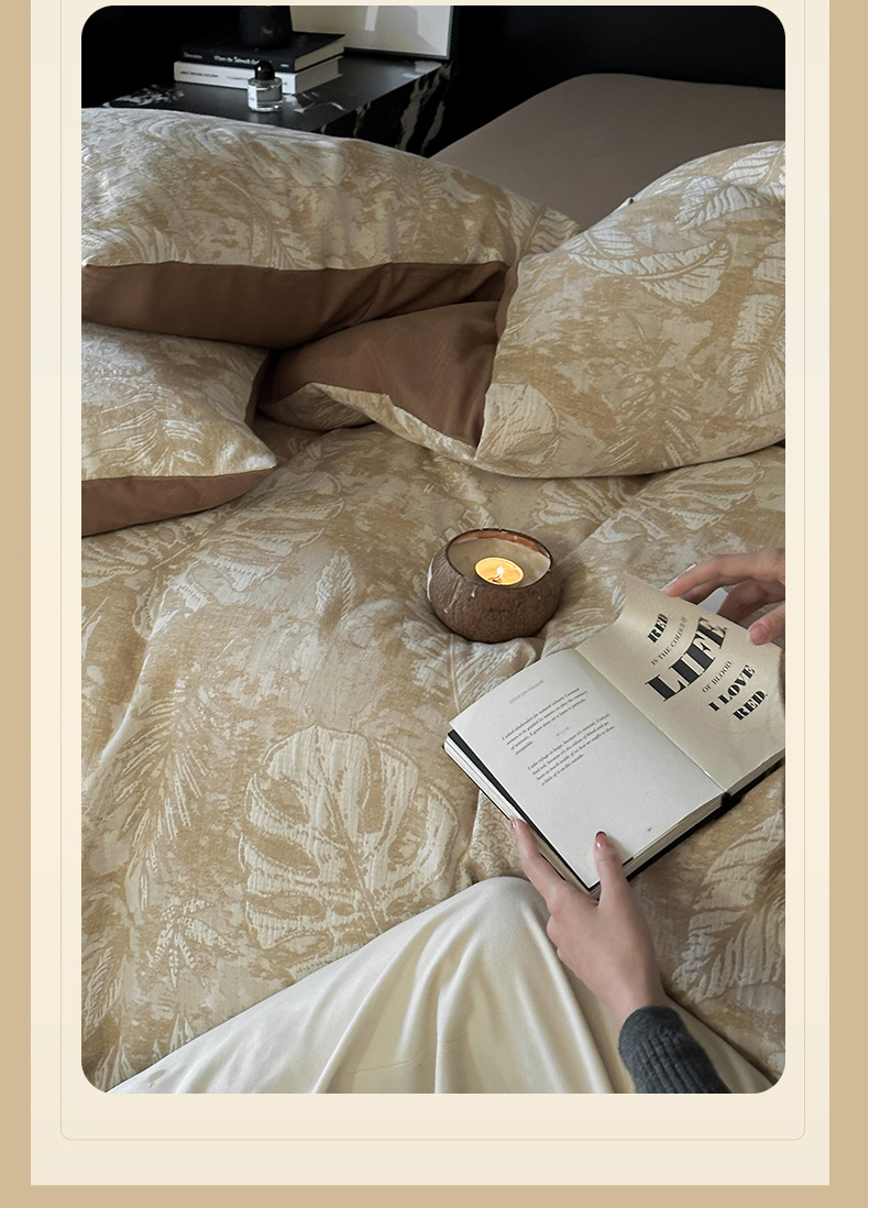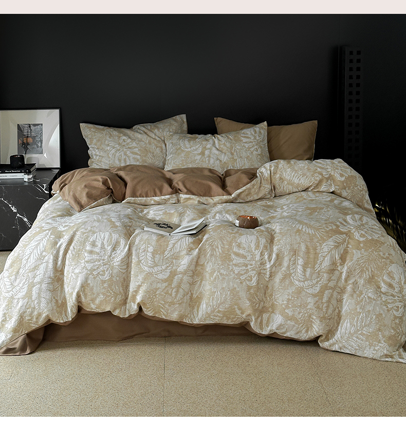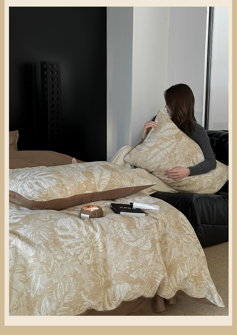 名品优仓 全棉水洗棉三层纱提花系列四件套-蕉叶之舞 蕉叶之舞-黄