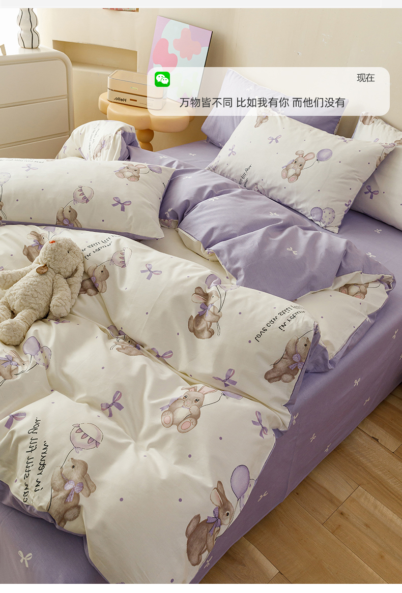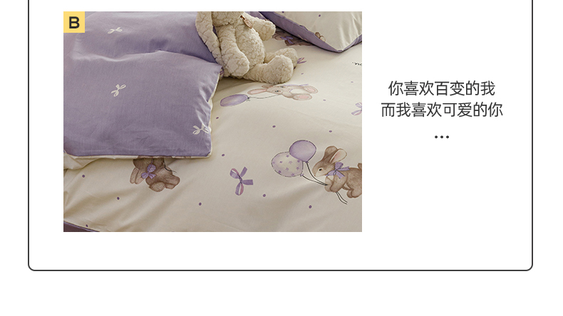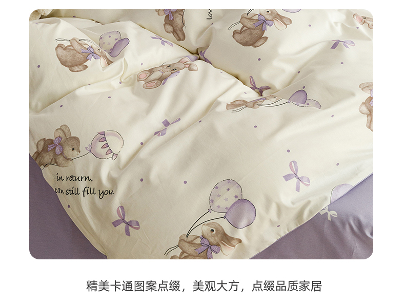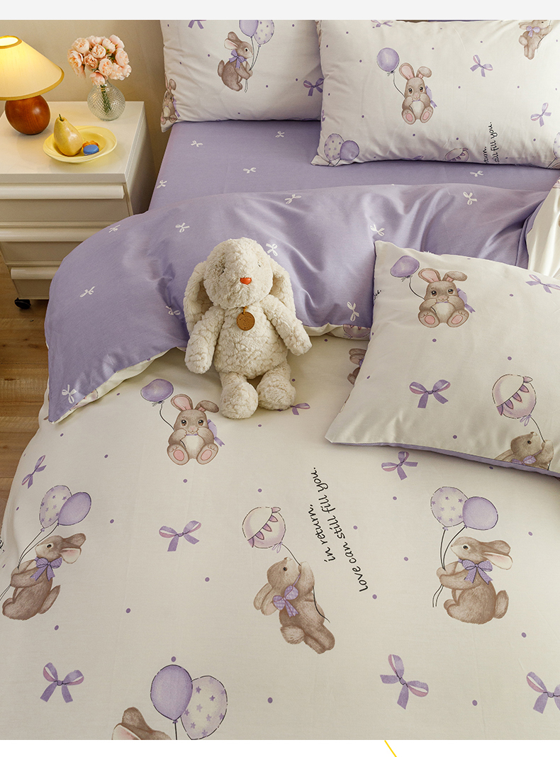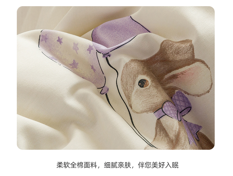 当前位置: 91家纺网 > 商品网购 > 床品套件 > 四件套 > 全棉普通四件套 > 红粉佳人家纺 2024新款纯棉卡通小清新四件套及单品 兔小呆-1