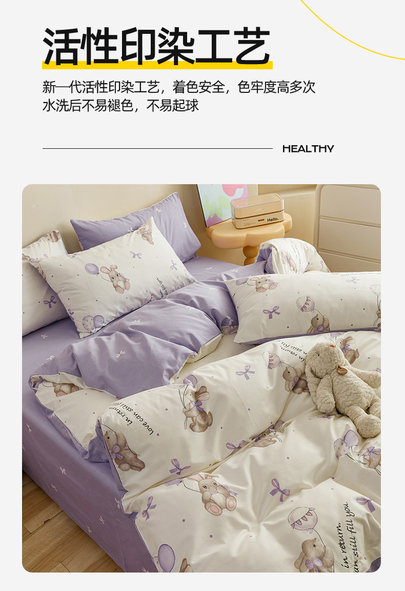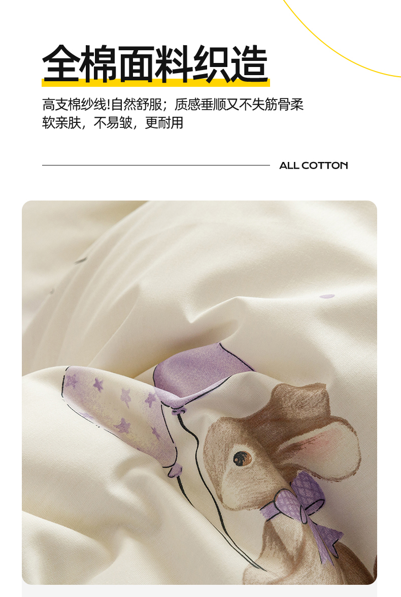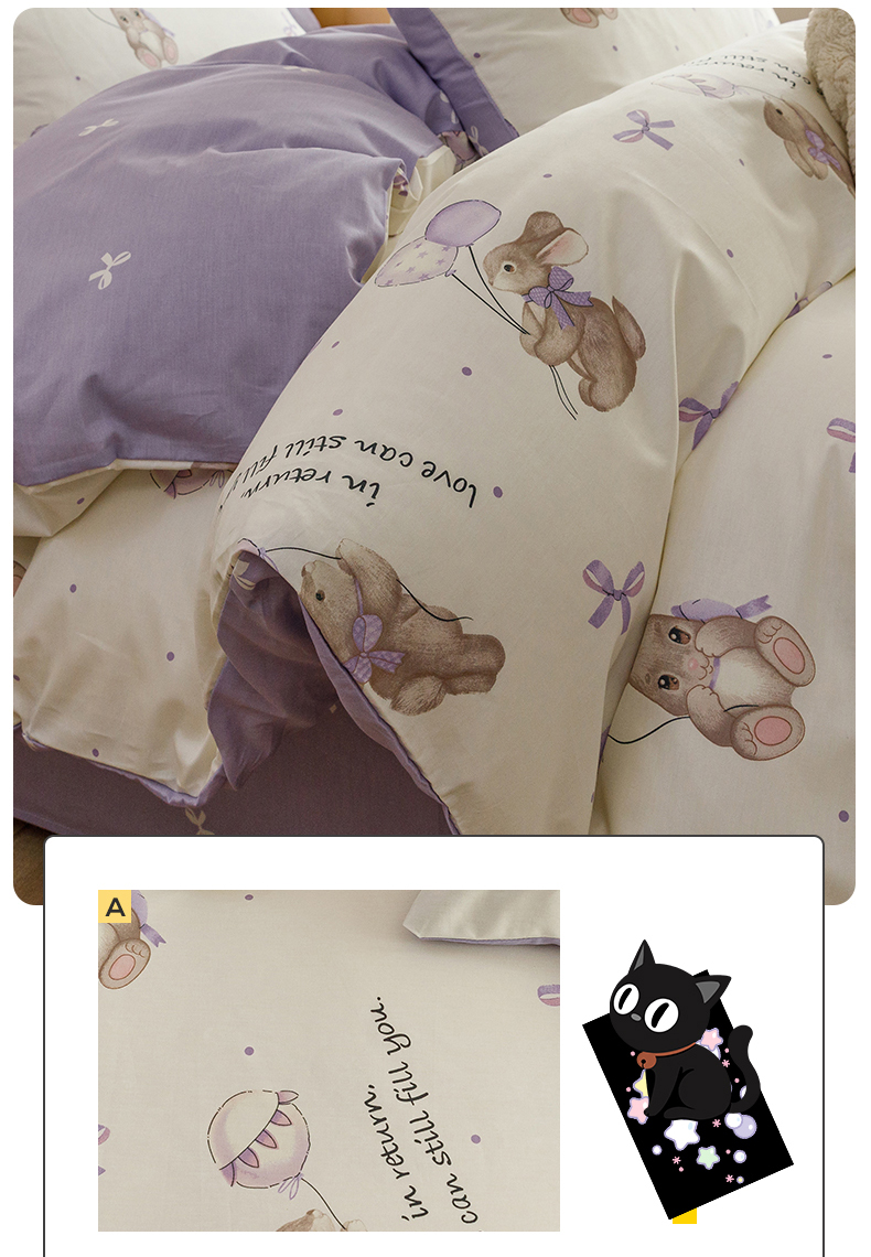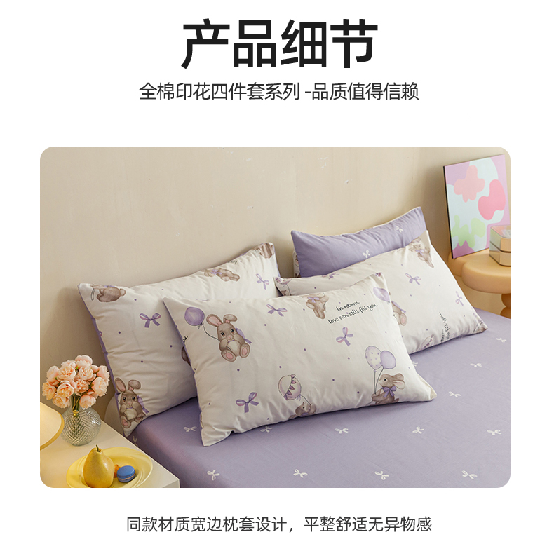 当前位置: 91家纺网 > 商品网购 > 床品套件 > 四件套 > 全棉普通四件套 > 红粉佳人家纺 2024新款纯棉卡通小清新四件套及单品 兔小呆-1