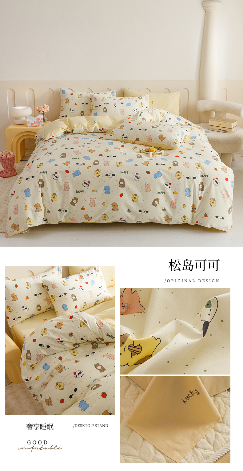当前位置: 91家纺网 > 商品网购 > 床品套件 > 四件套 > 全棉普通四件套 > 红粉佳人家纺 2024新款纯棉卡通小清新四件套及单品 松岛可可
