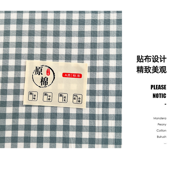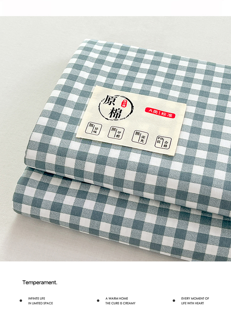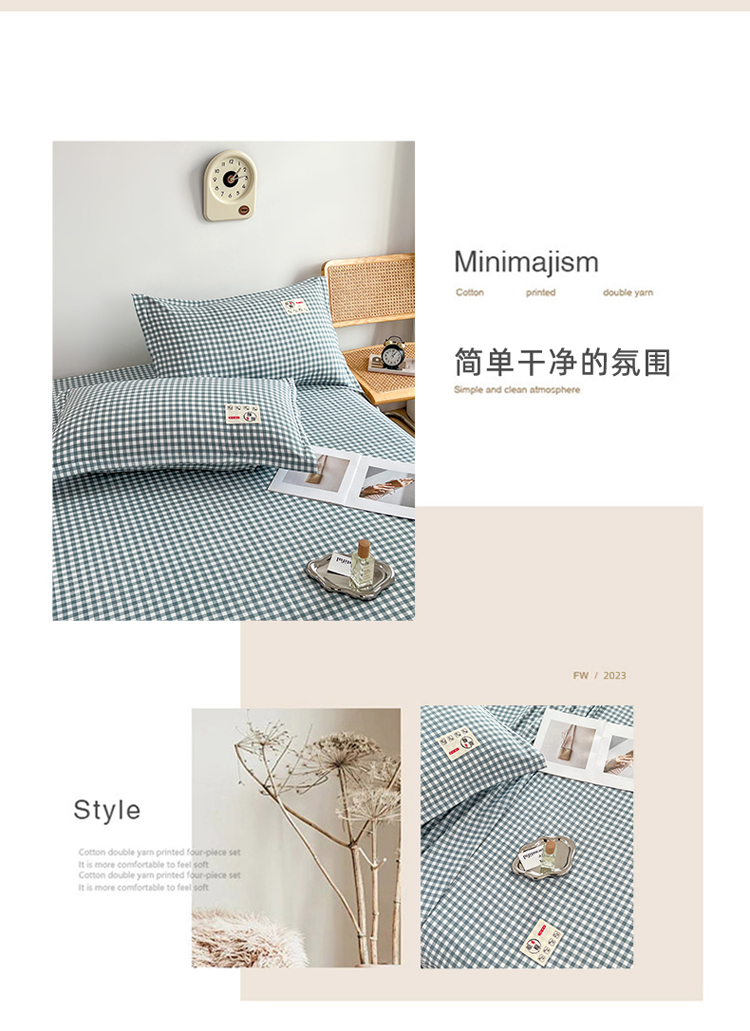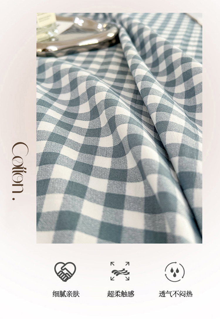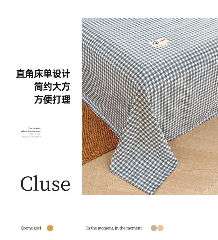 商品名称:圣比熊 2025新款水洗棉麻单层床单席梦思床垫保护套床盖床裙加枕套 床单小格-蓝