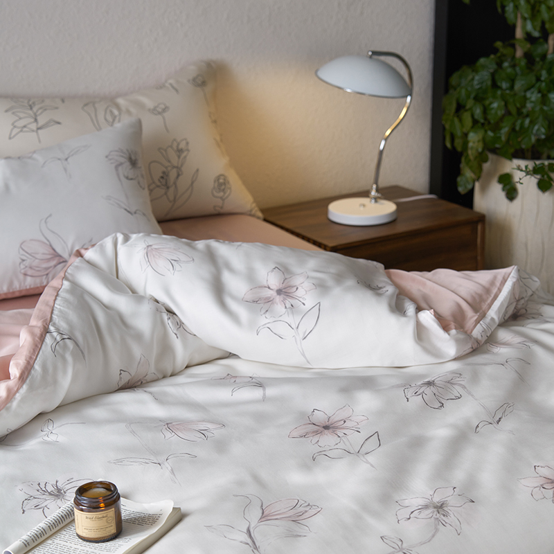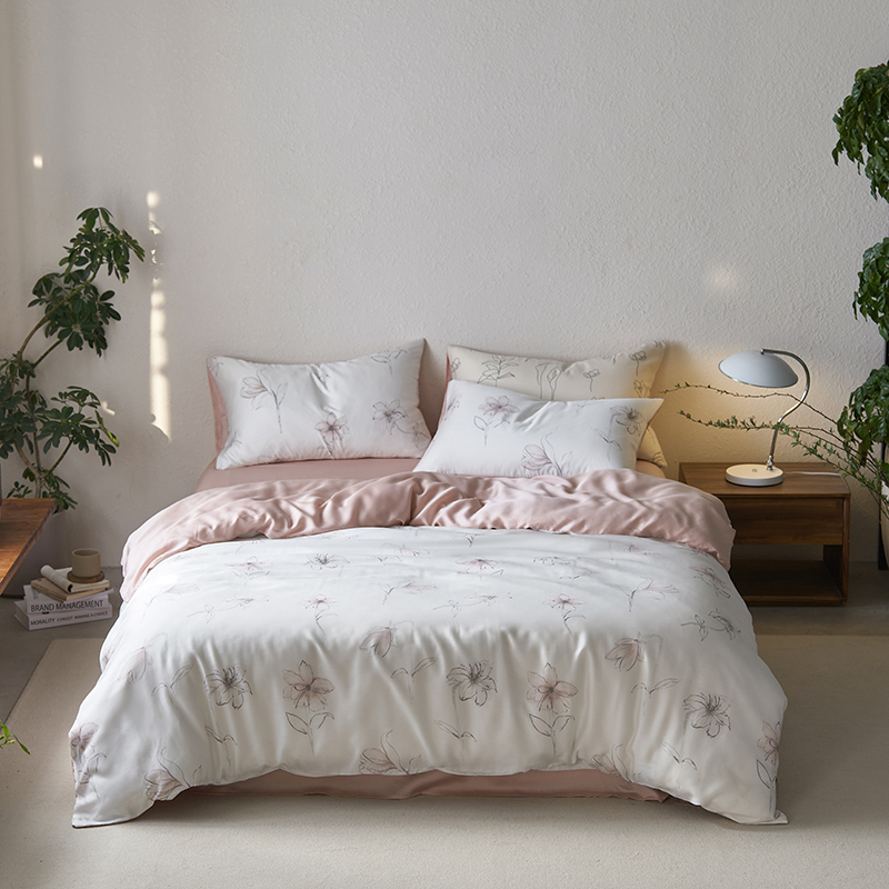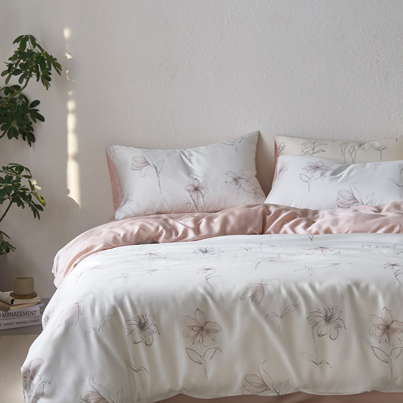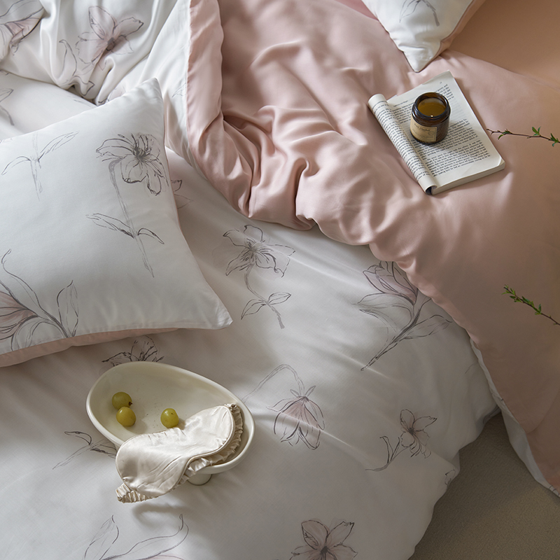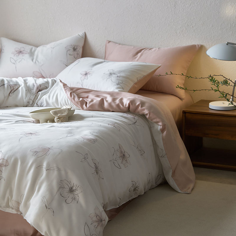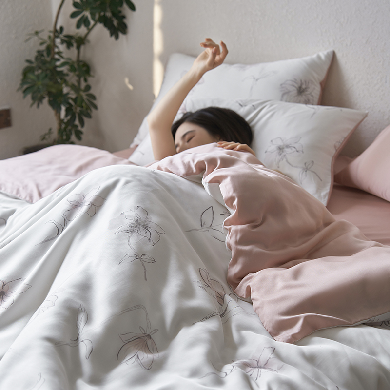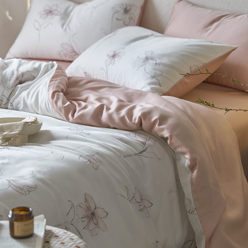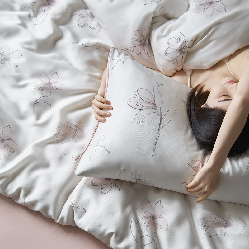 时年家纺 2024春夏新品莱赛尔天丝印花四件套 枝叶诗韵