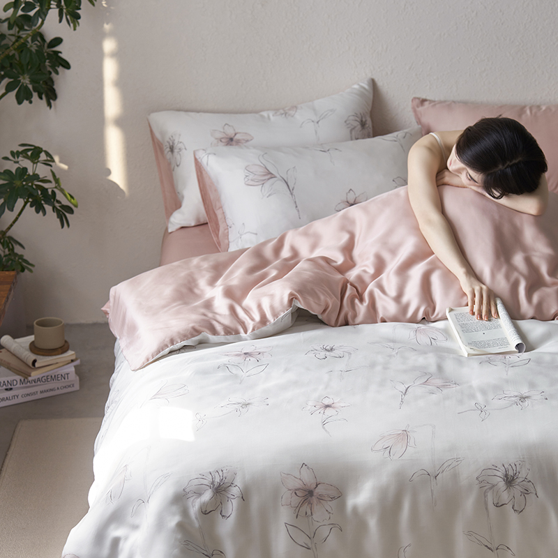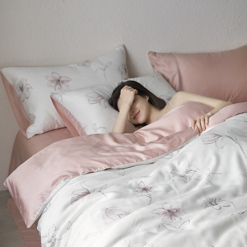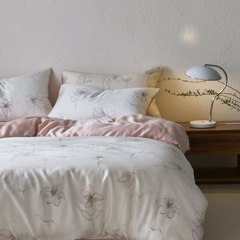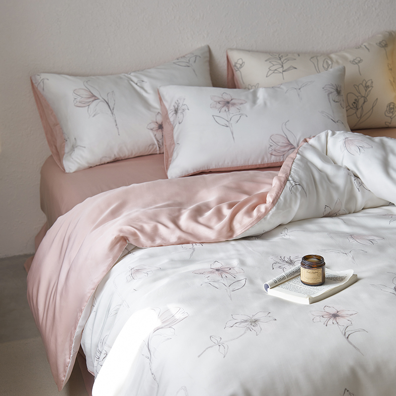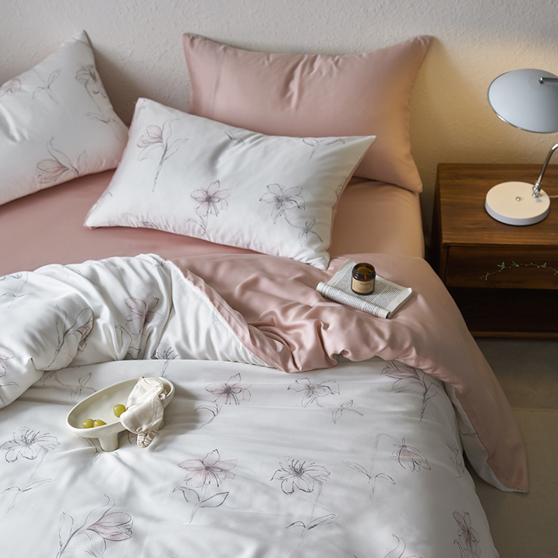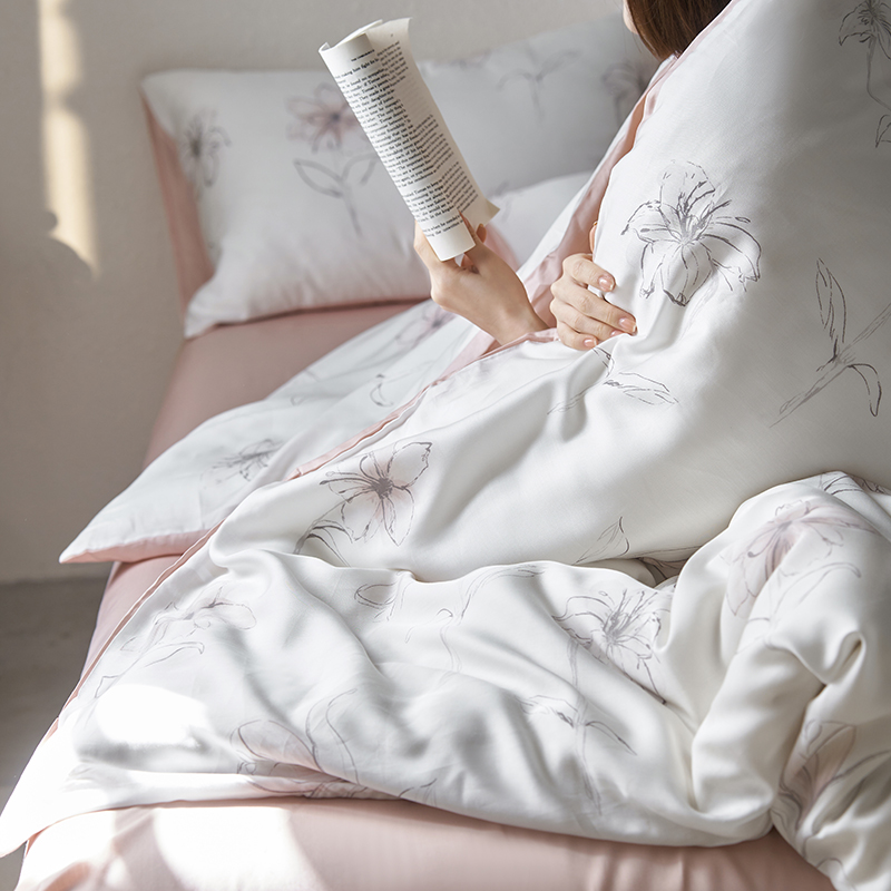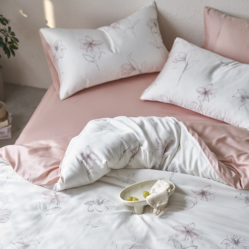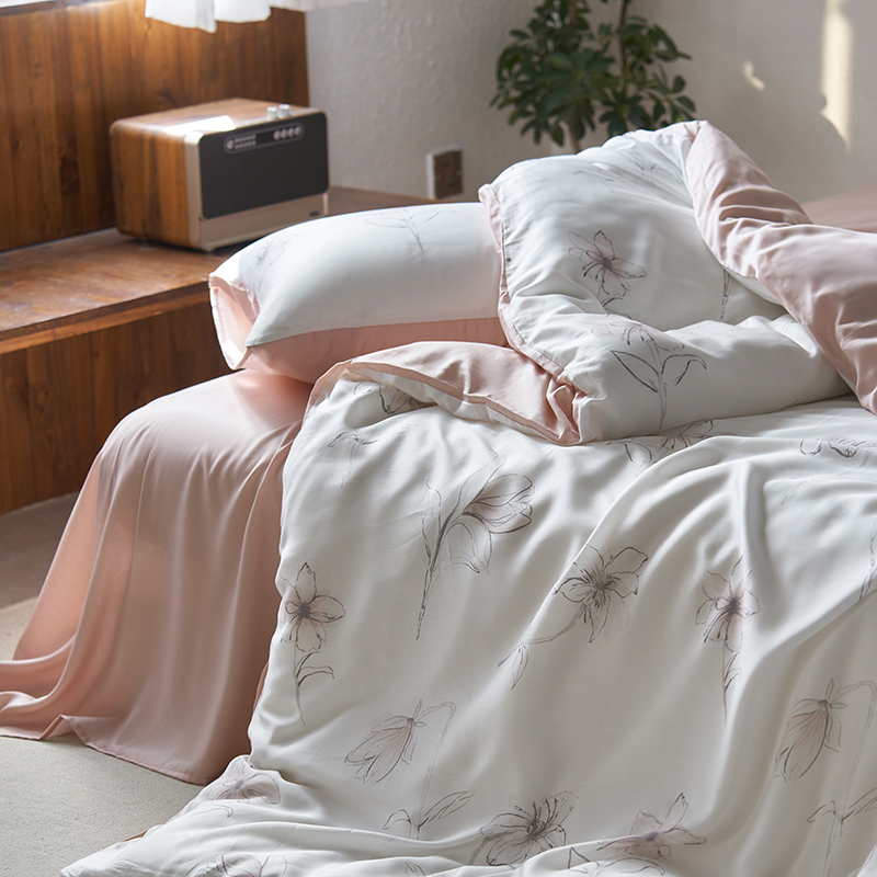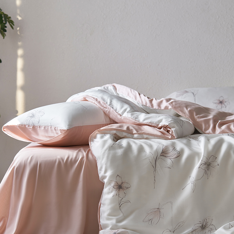 时年家纺 2024春夏新品莱赛尔天丝印花四件套 枝叶诗韵