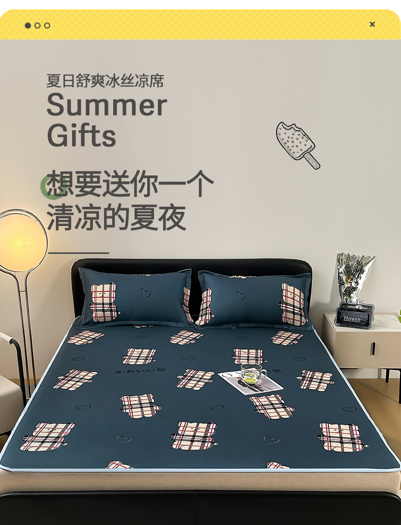 卡斯诺家纺馆 2025新款冰丝凉席绑带款凉席(下载包包含买家秀) 布袋熊