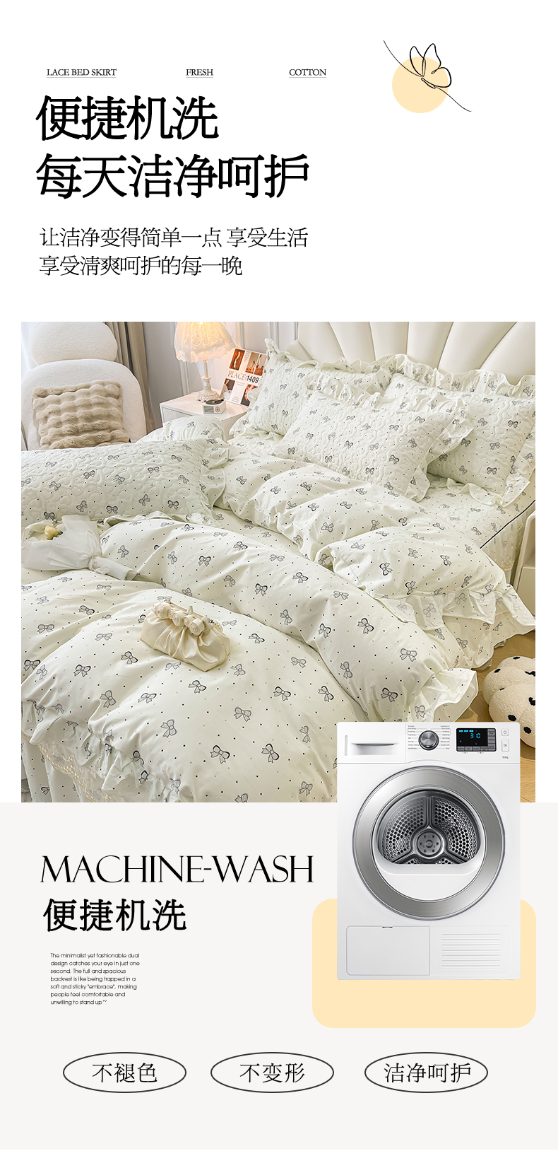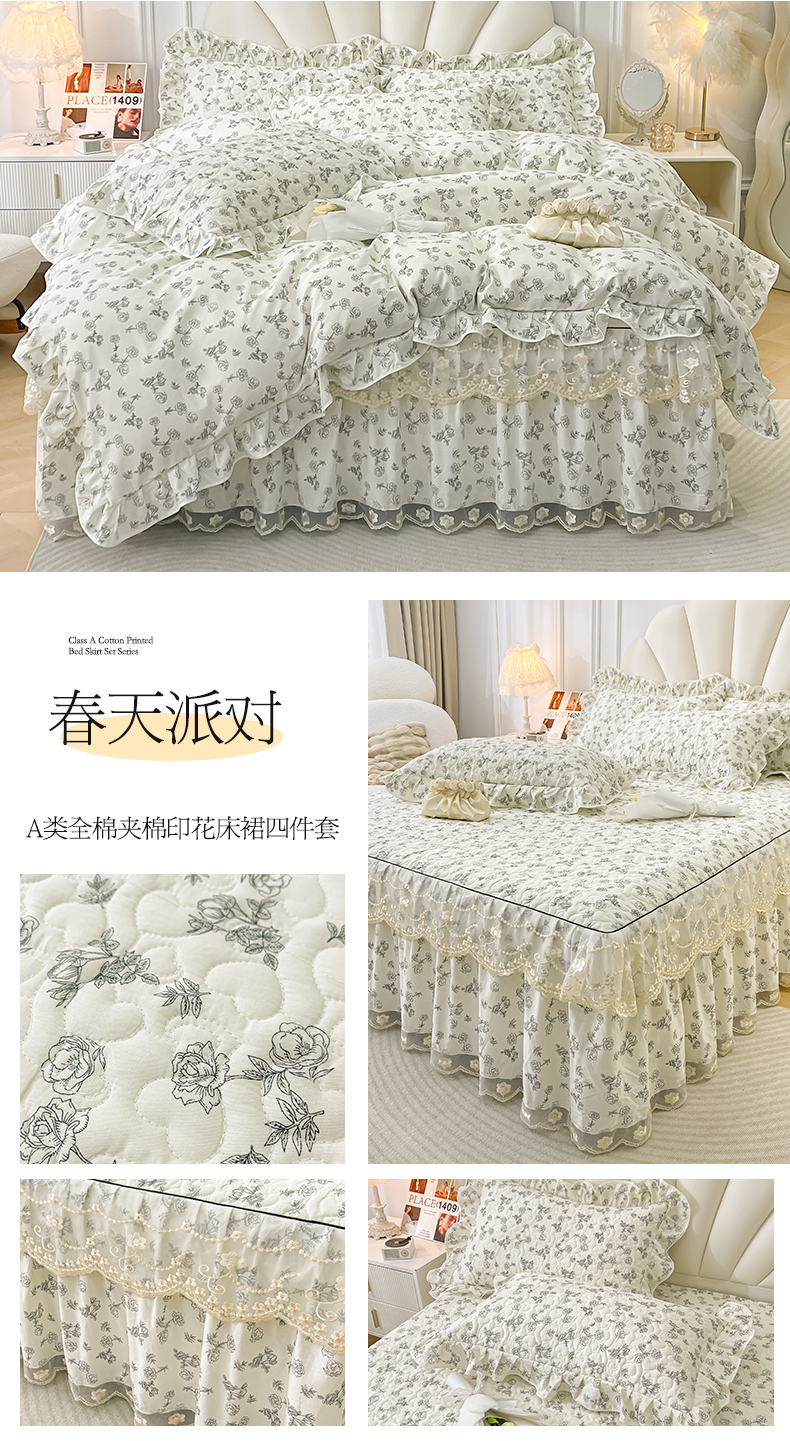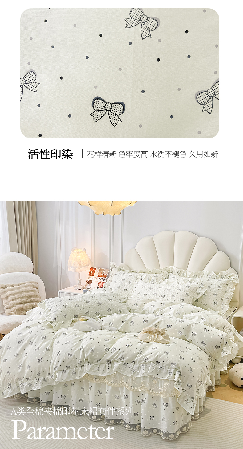 宜凡家纺 2024新款全棉夹棉印花床裙系列四件套 法式熊