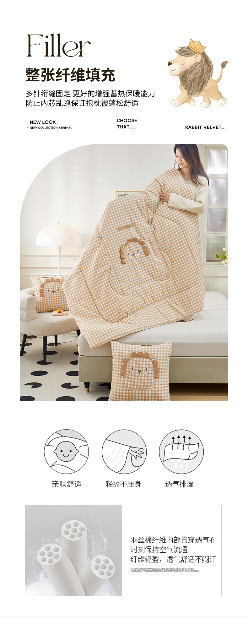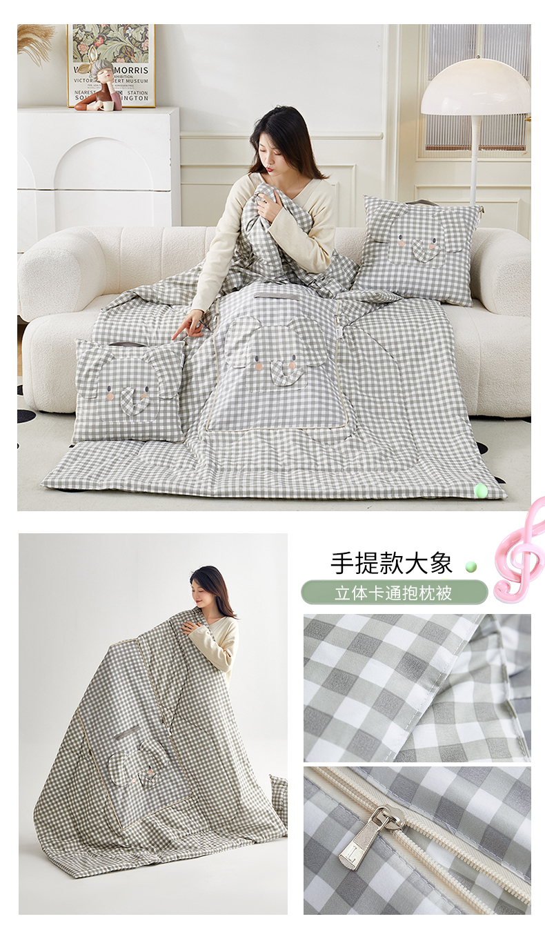 (总)雷娜家居 2025款手提卡通绣花系列抱枕被,手提款大象,手提款小狮子