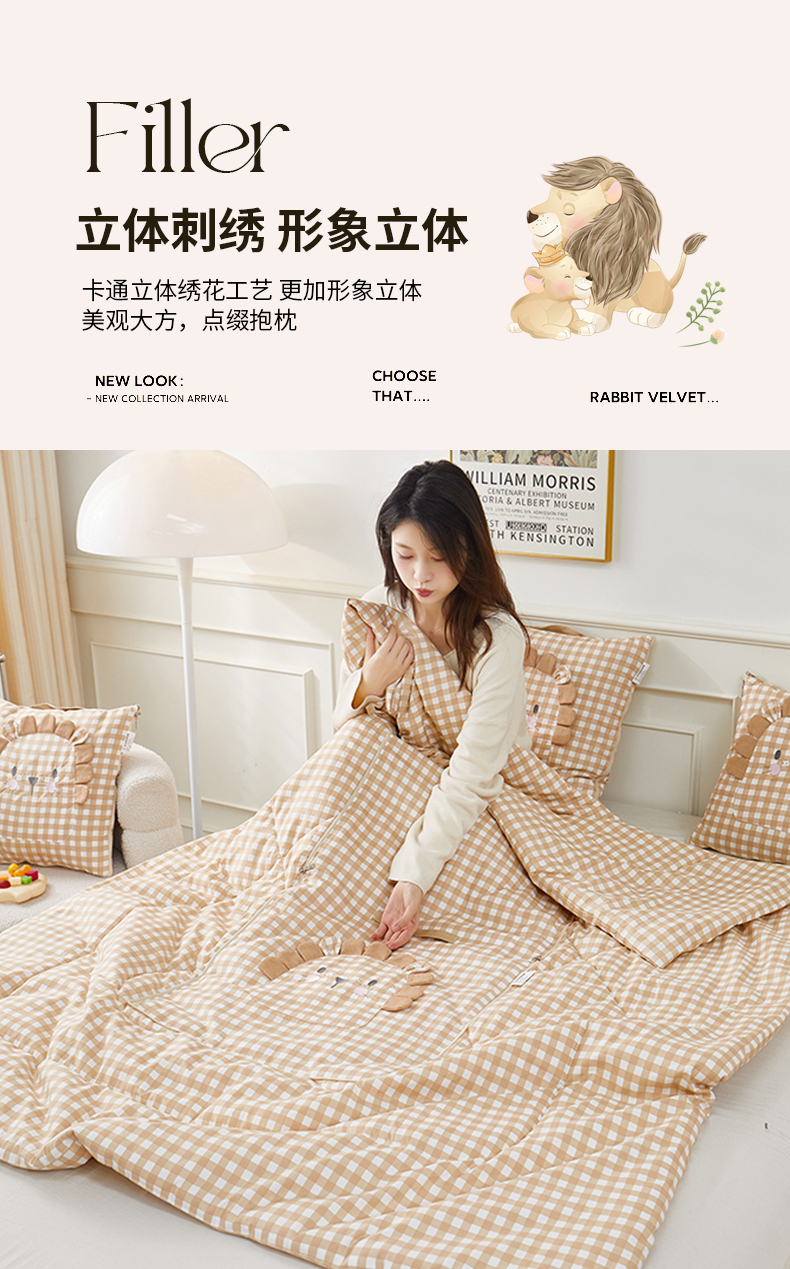 (总)雷娜家居 2025款手提卡通绣花系列抱枕被