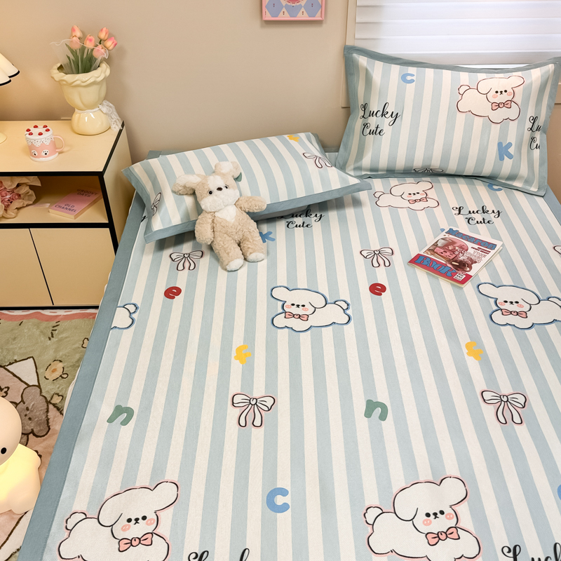 (总)慕尚家纺 2025新款全棉印花学生三件套套件,艾米熊,彩色爱心狗,铃兰花,美食派对,萌宠乐园,书生猫咪,桃心狗,汪可爱,旺旺,樱桃