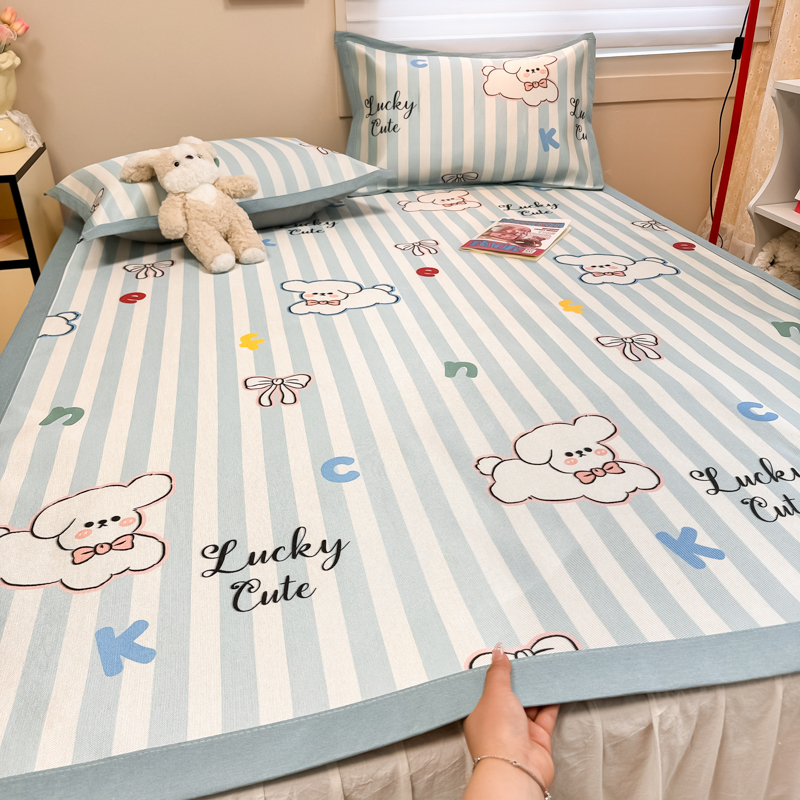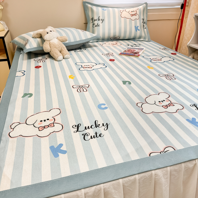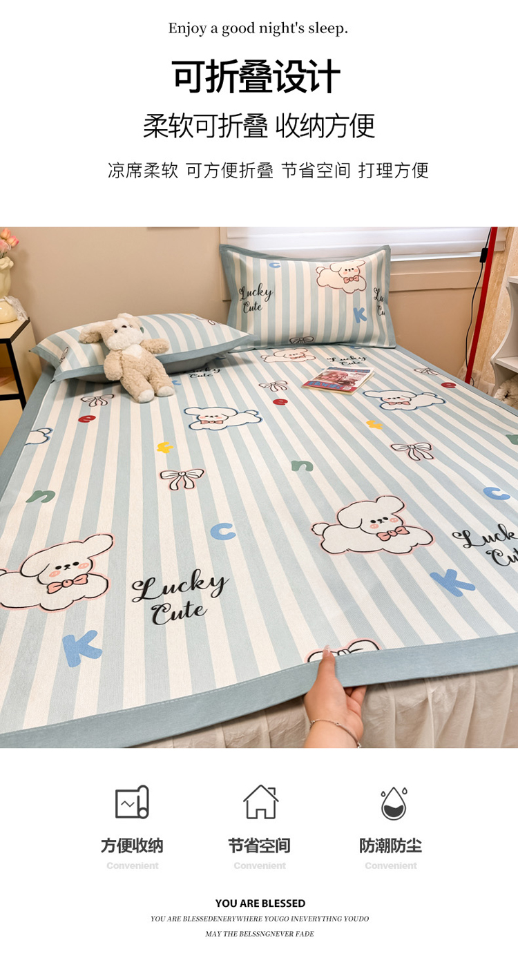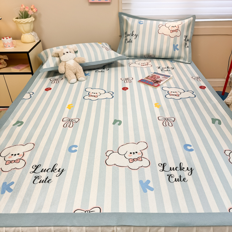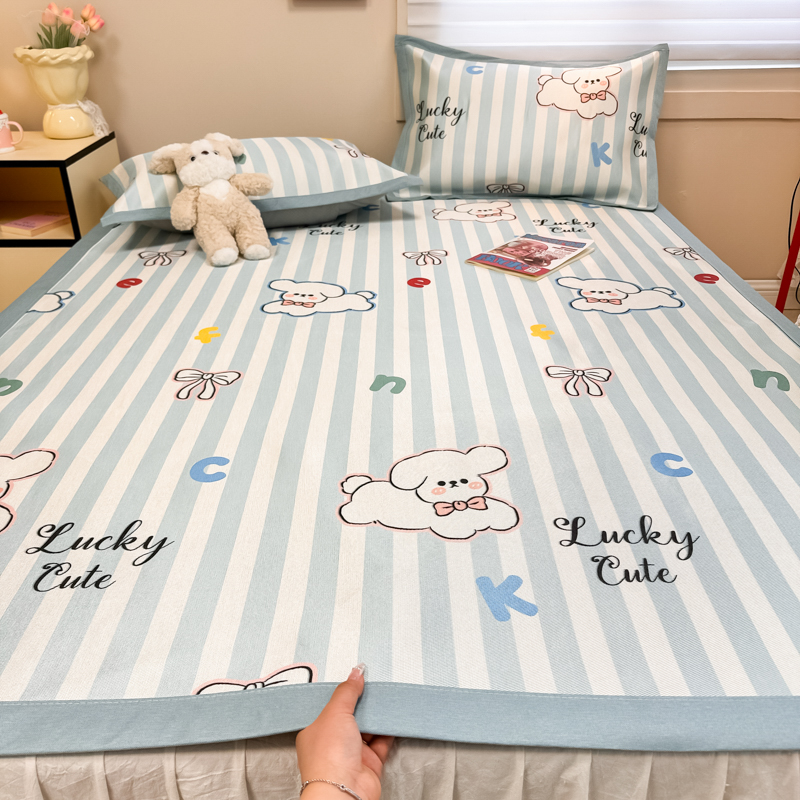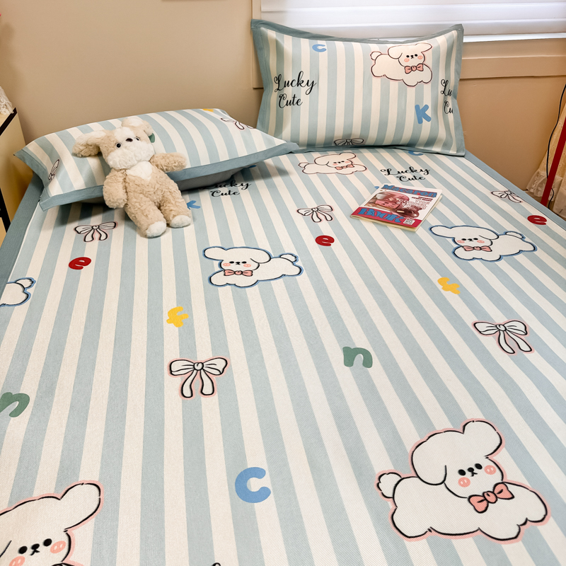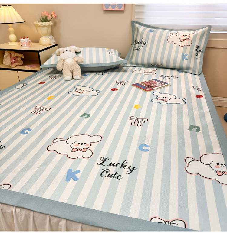 2025新款慕尚600D数码印花冰丝凉席 蝴蝶结狗