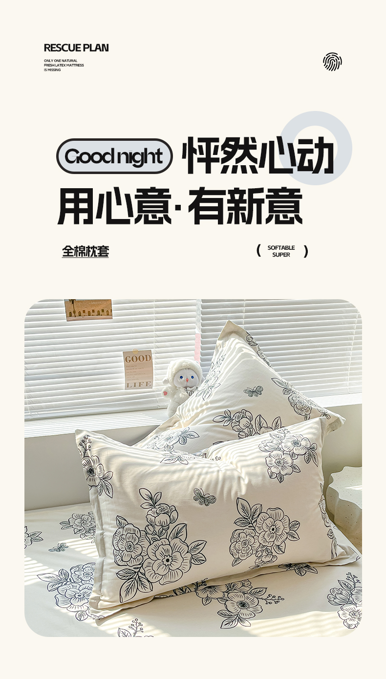 涵宸家纺 2024新款全棉小清新印花单品套件--单枕套 枕套-安曼
