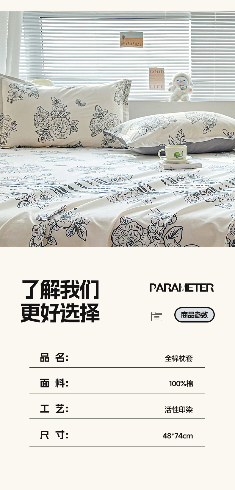 商品名称:涵宸家纺 2024新款全棉小清新印花单品套件--单枕套 枕套-安曼