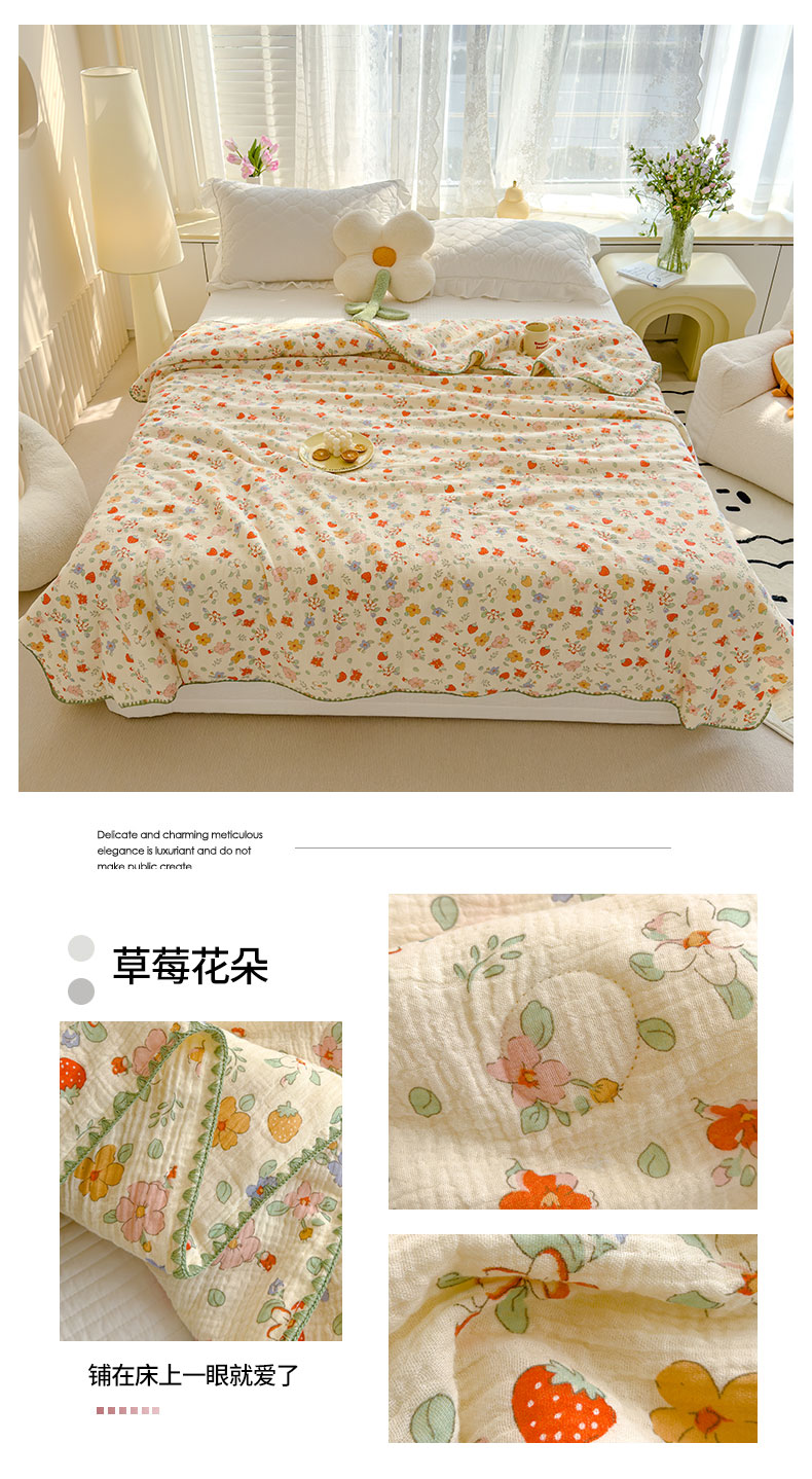 商品名称:芯恋 2025新款母婴级全棉皱皱纱双层纱夏被 草莓花朵