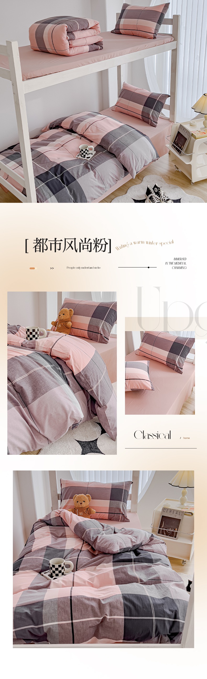 商品名称:久典家居 2024新款A类全棉学生款三件套 都市风尚粉