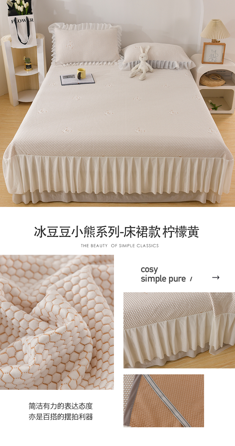 鑫姿席业 2025新款A类抗菌冰豆豆床裙款凉席-小熊系列 柠檬黄