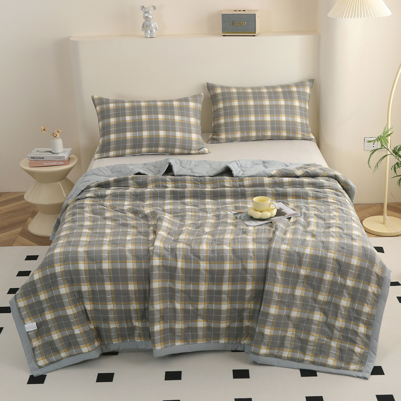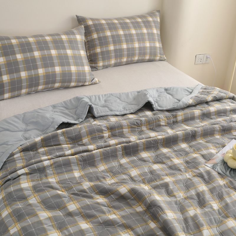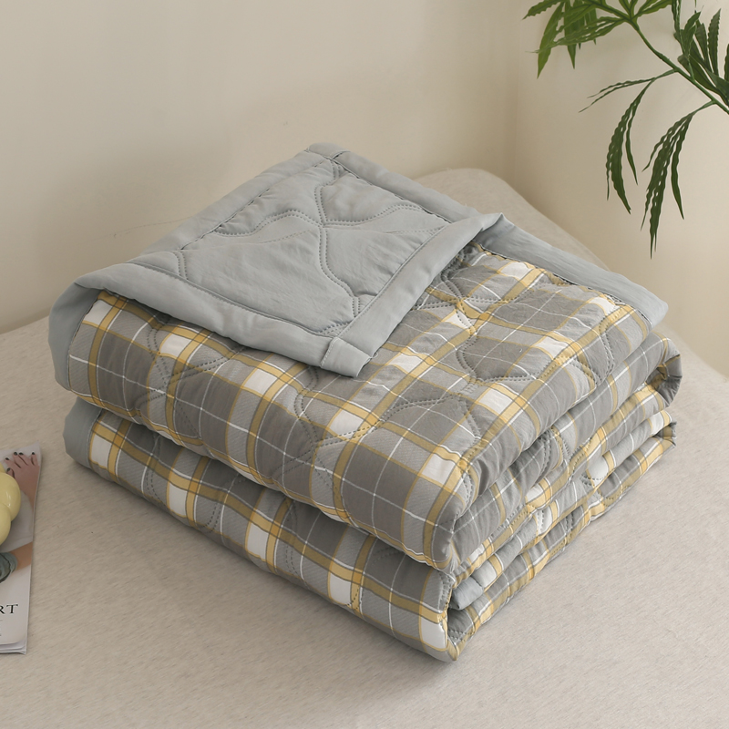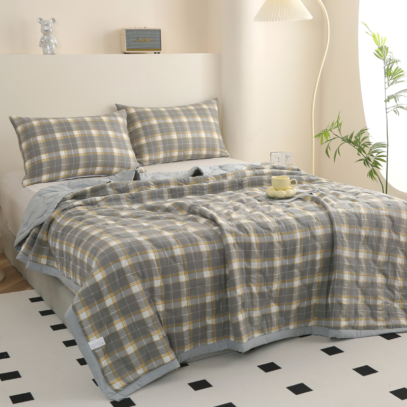 商品名称:欧喜璐 2024新款水洗棉超声波礼品夏被夏凉被春秋被 格子-灰黄