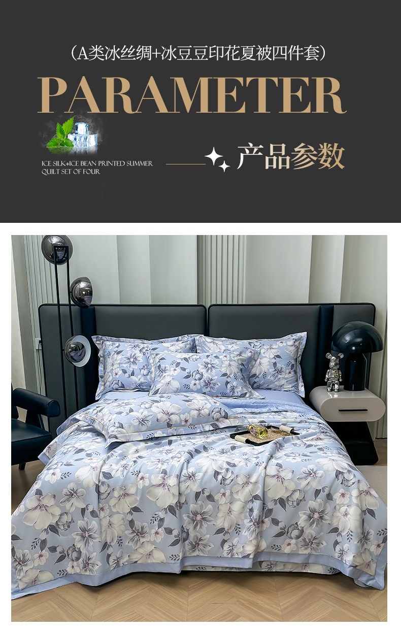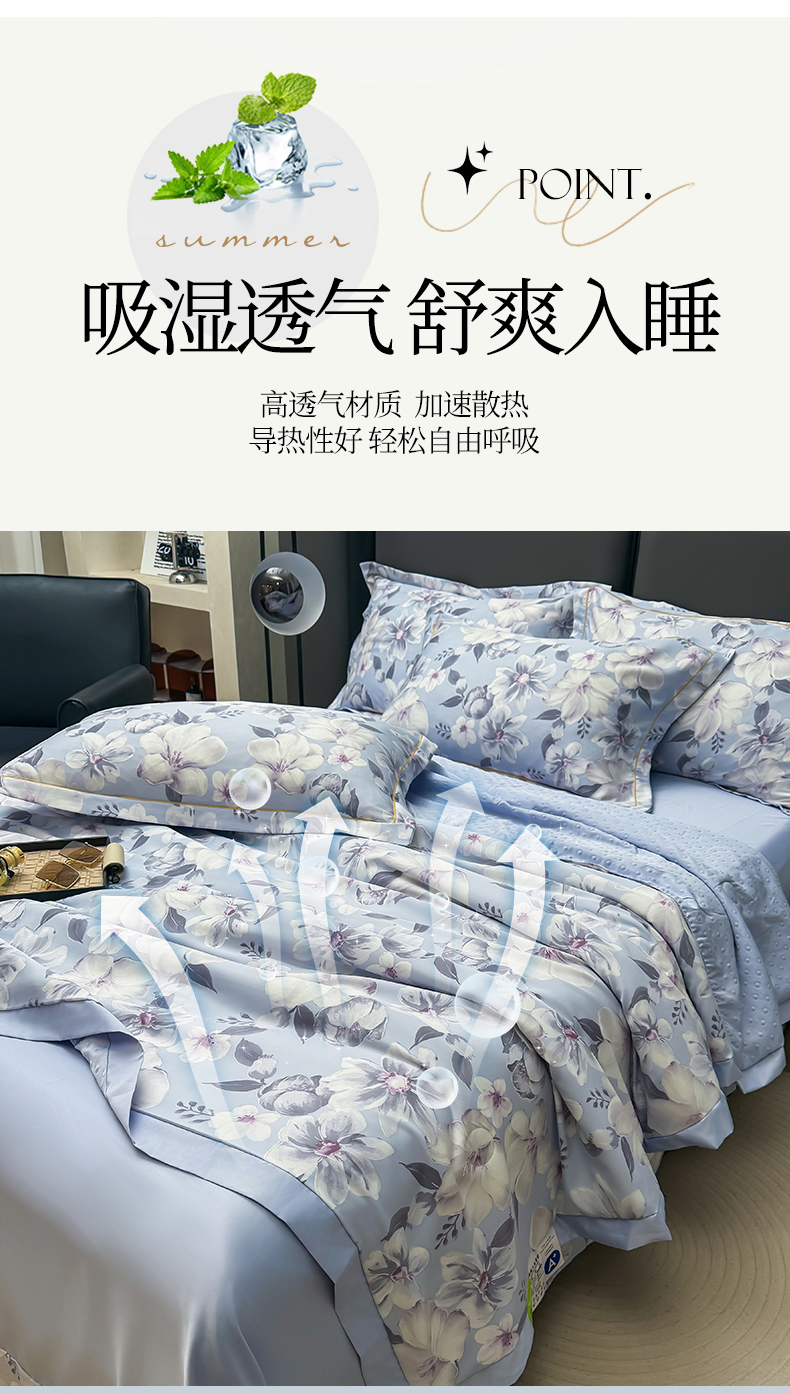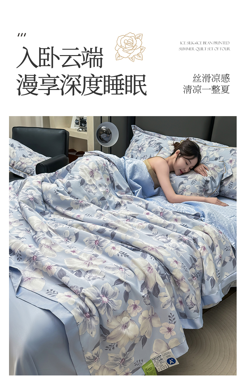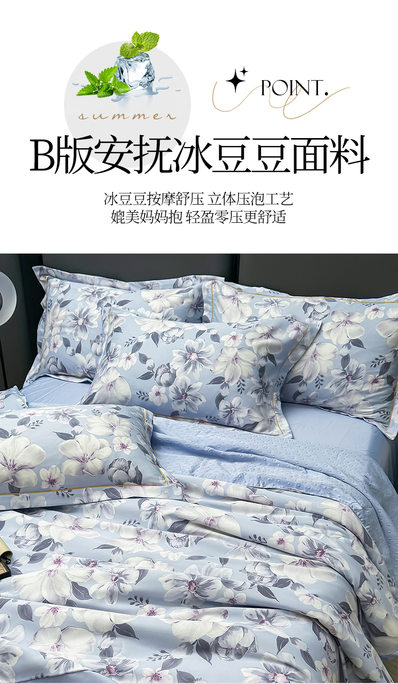 当前位置: 91家纺网 > 商品网购 > 床品套件 > 四件套 > 夏被四件套 > 满羽家纺 2024热款冰丝绸冰豆豆被夏被四件套凉感空调被 馨语 浅紫