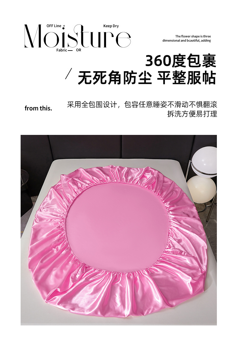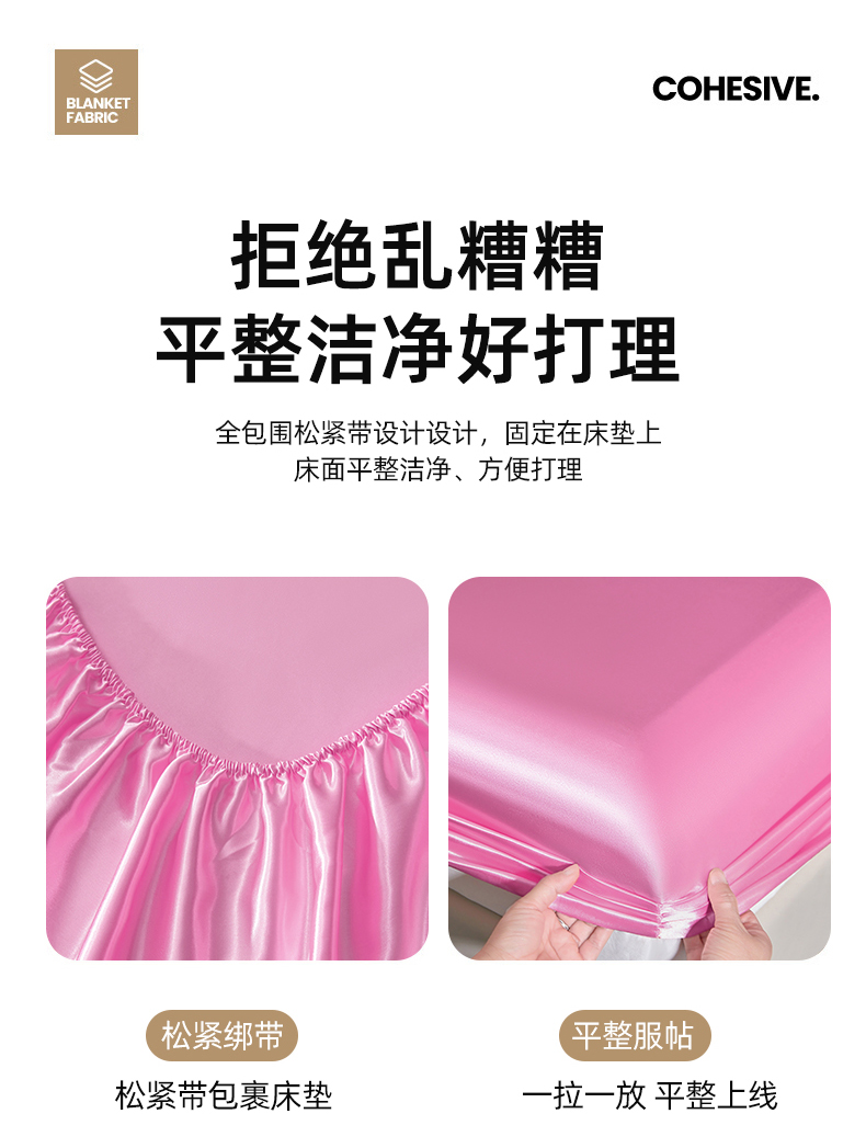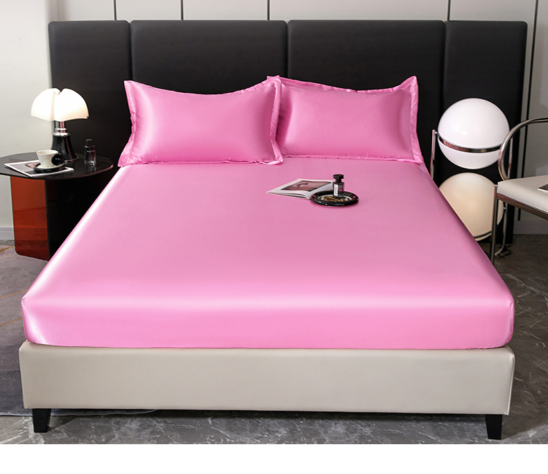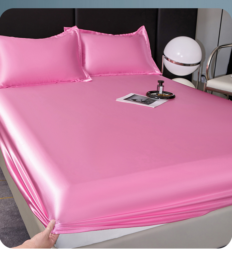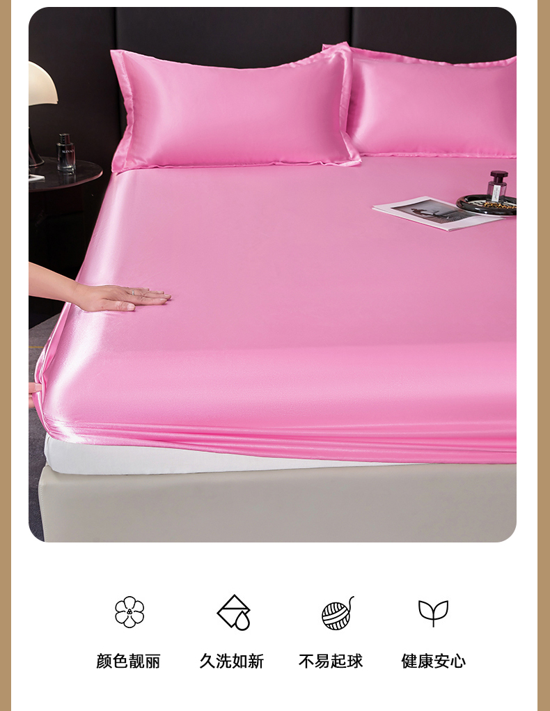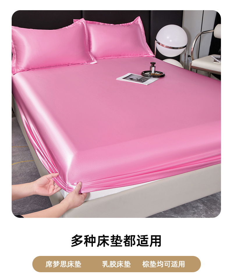 商品名称:梦舒羽 2025新款可水洗冰丝床垫保护套床笠三件套 粉色