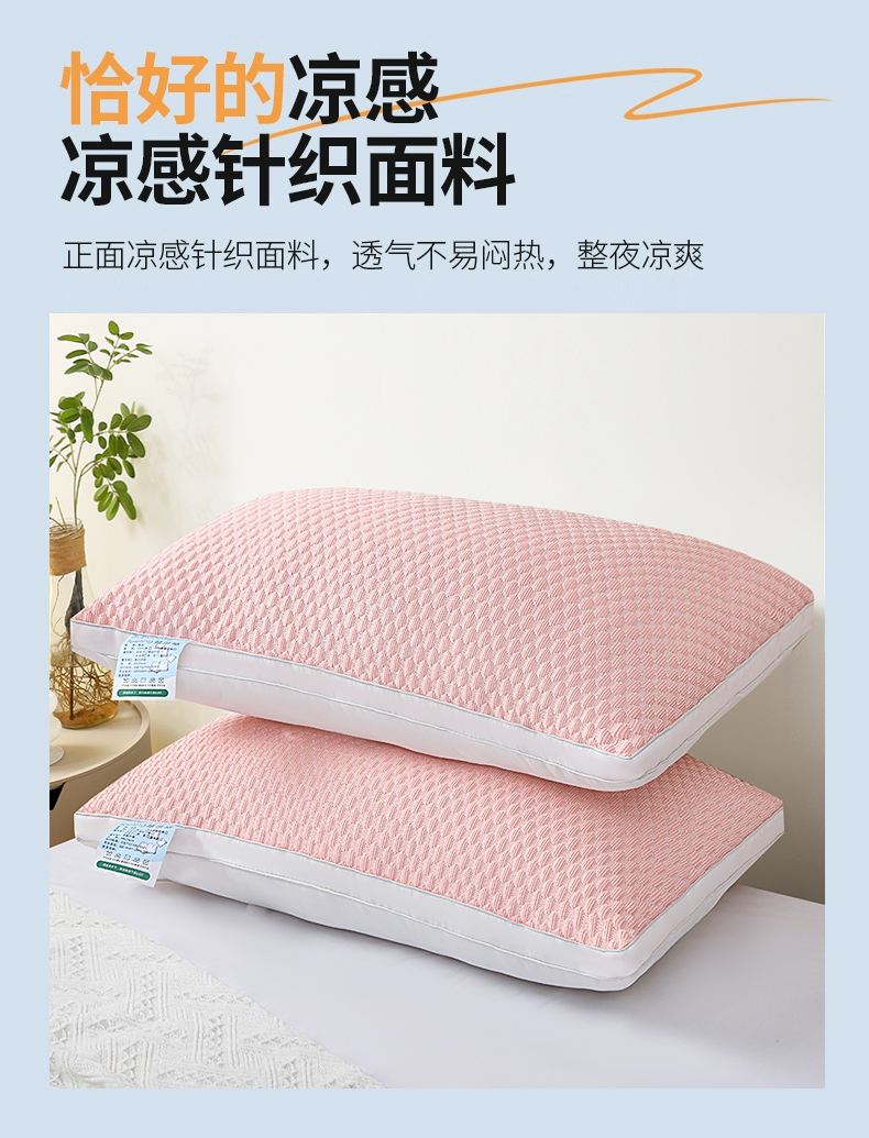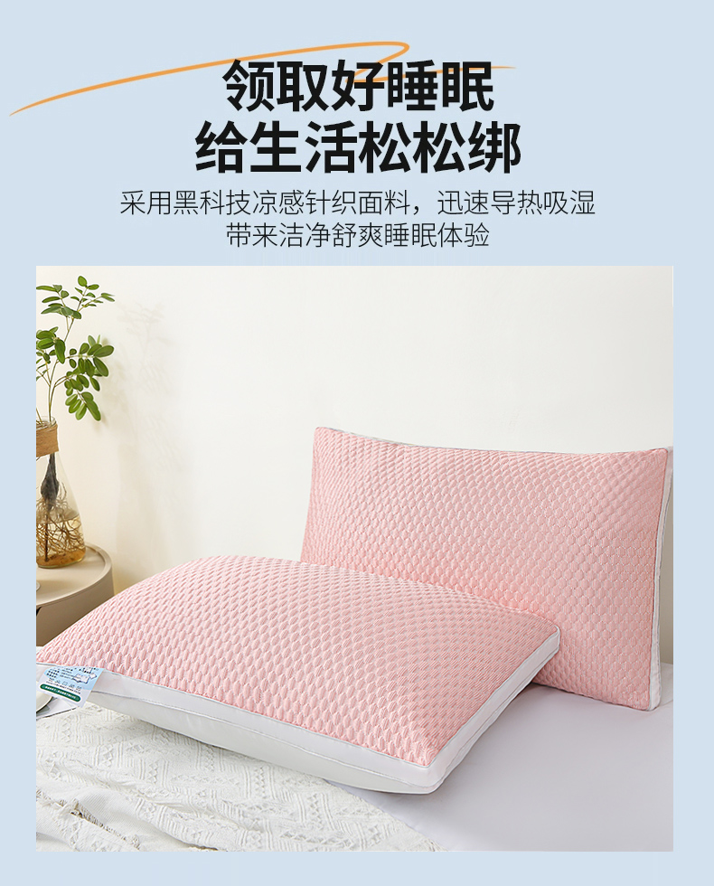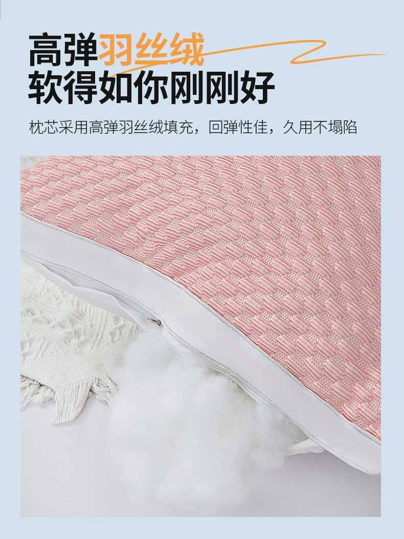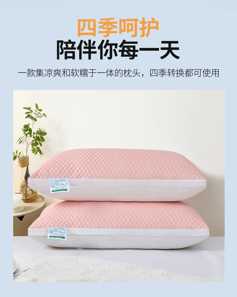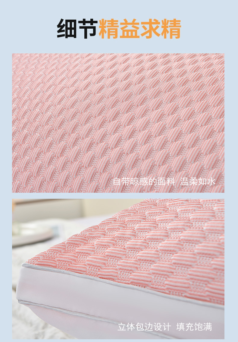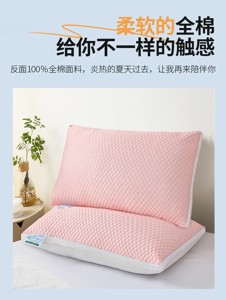兴丝露枕芯 凉感丝豆豆羽丝枕 全棉羽丝绒枕头 立体枕 双边枕 春夏枕头 夏季凉感枕 舒适枕