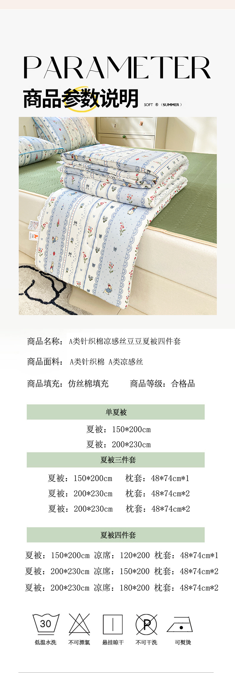 夏被200*230cm 软席150*200cm 枕套48*74cm*2只