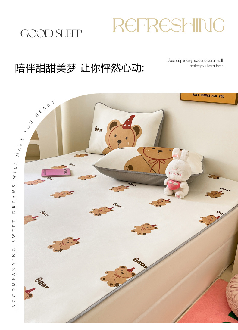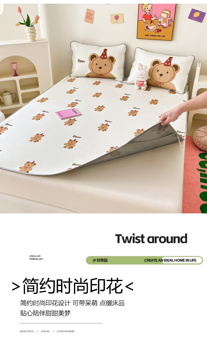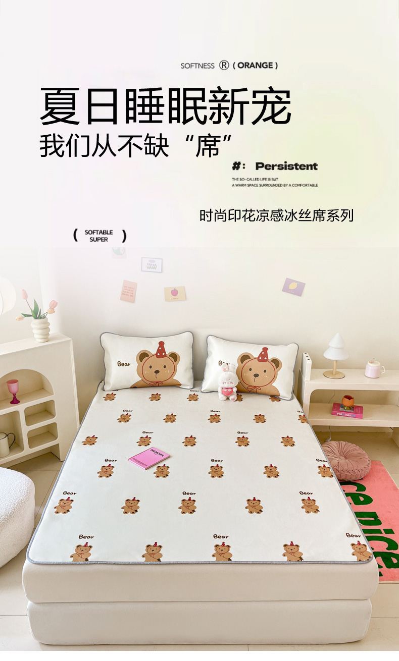 寐居家纺 2024新款A类时尚印花凉感冰丝凉席 嘟嘟熊