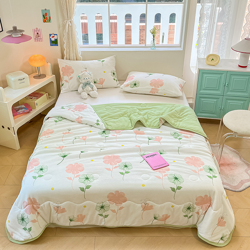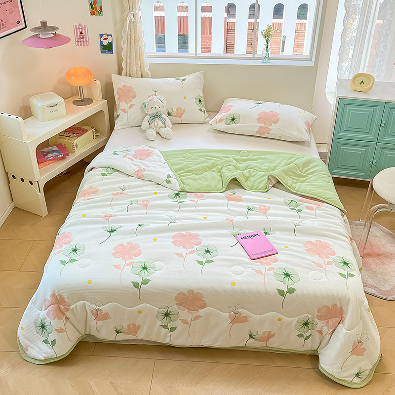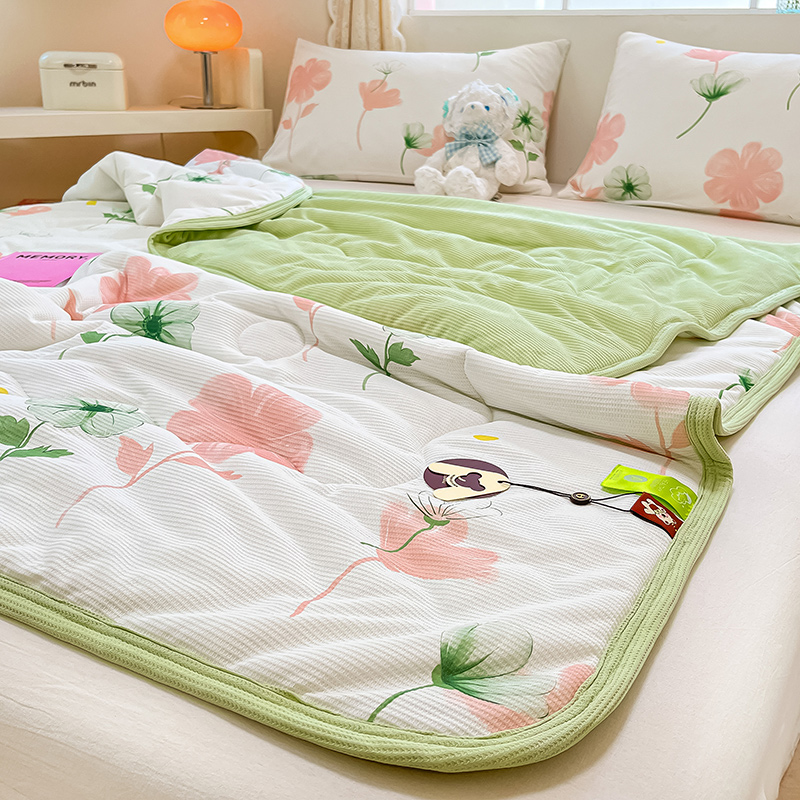 (总)美梦里 2025春夏新款A类云母凉感夏被夏凉被空调被--幸运多,幸运多-粉色,幸运多-茶灰色,幸运多-蓝色,幸运多-绿色,幸运多-天蓝