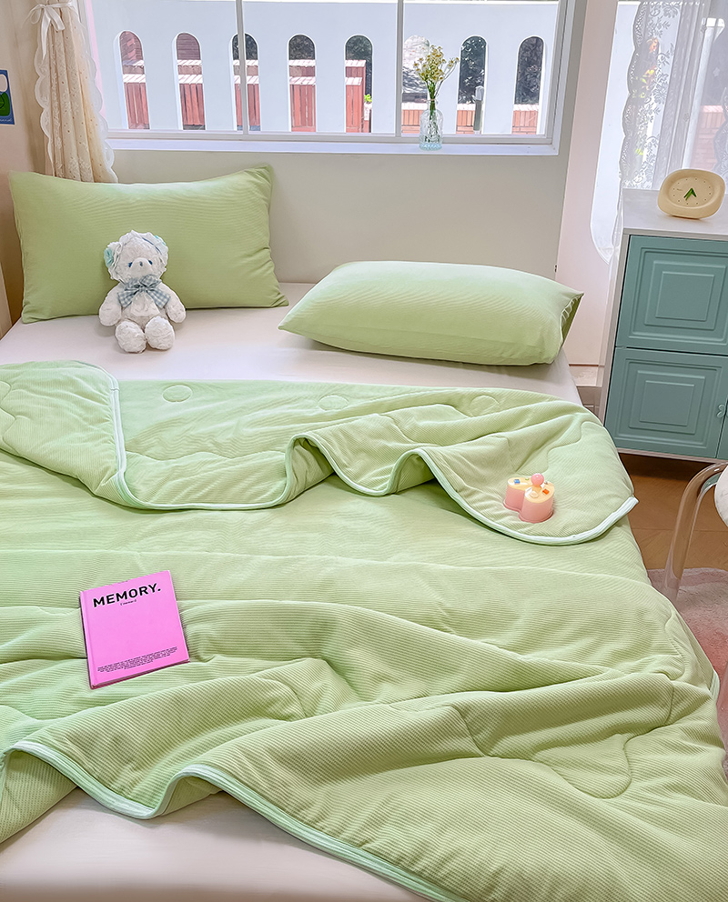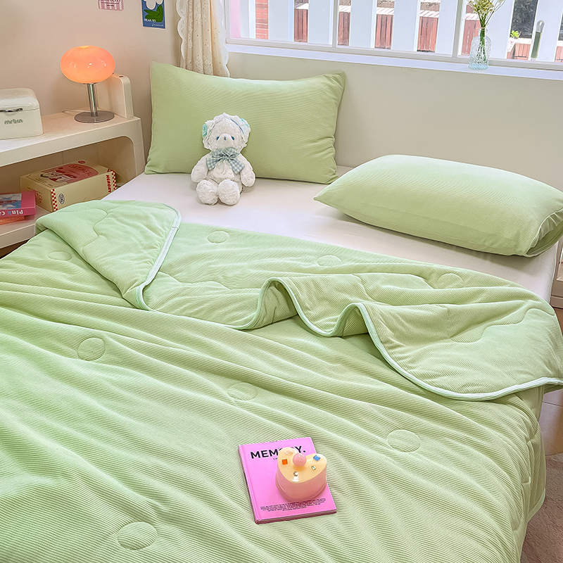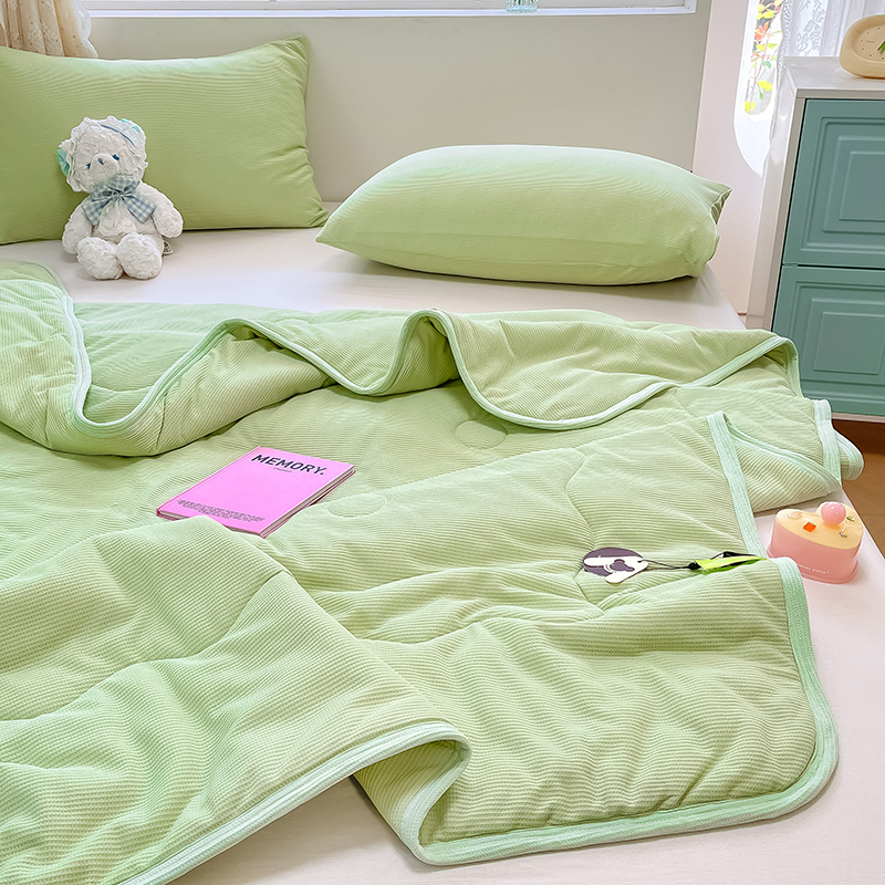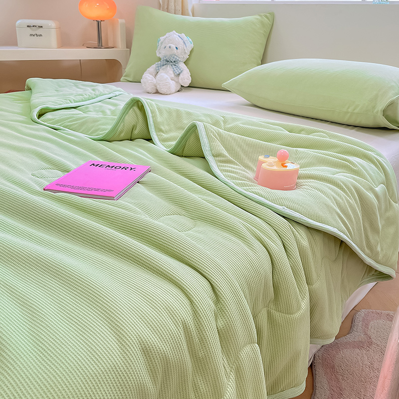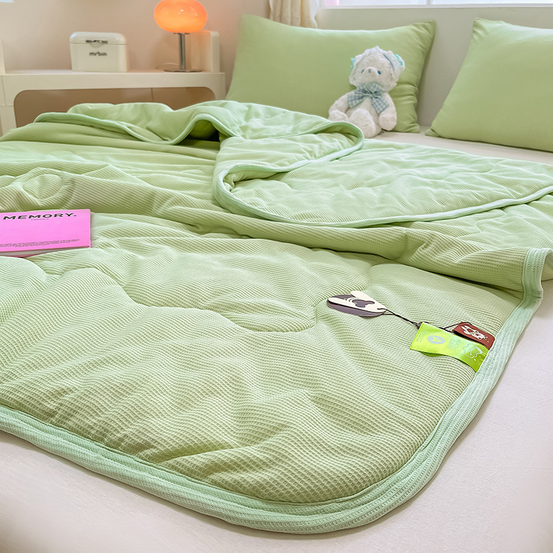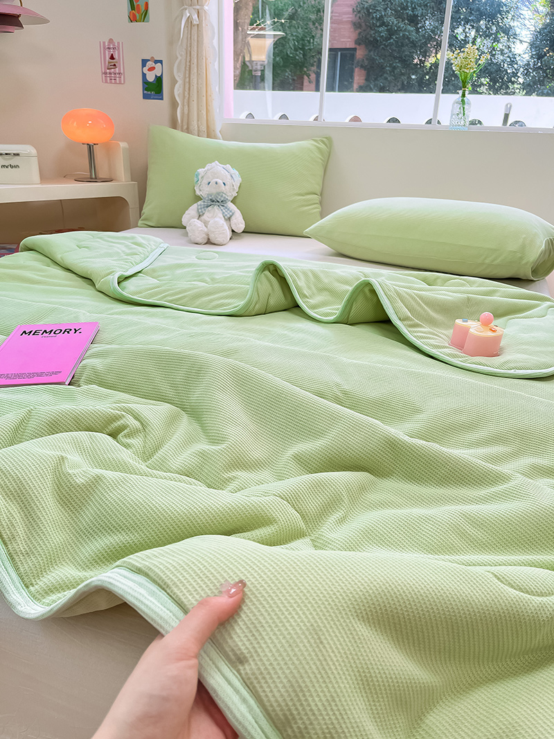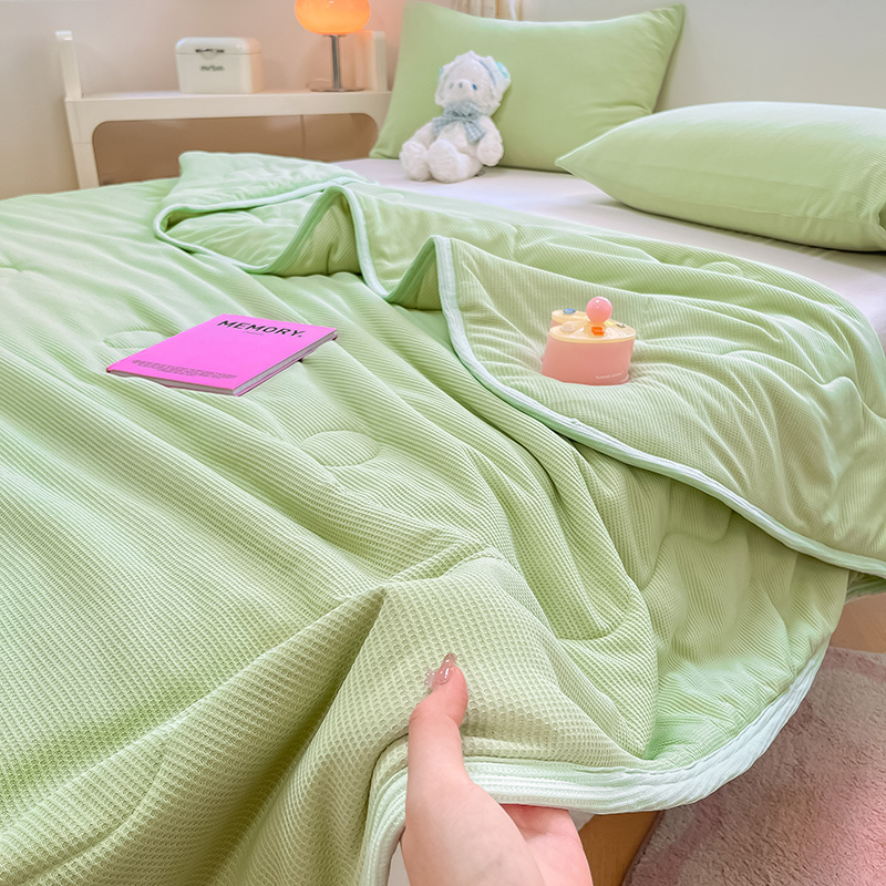商品名称:美梦里 2024新款A类针织华夫格夏被夏凉被空调被子 线条绿
