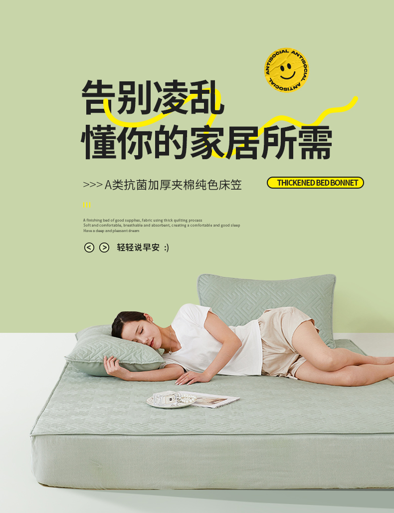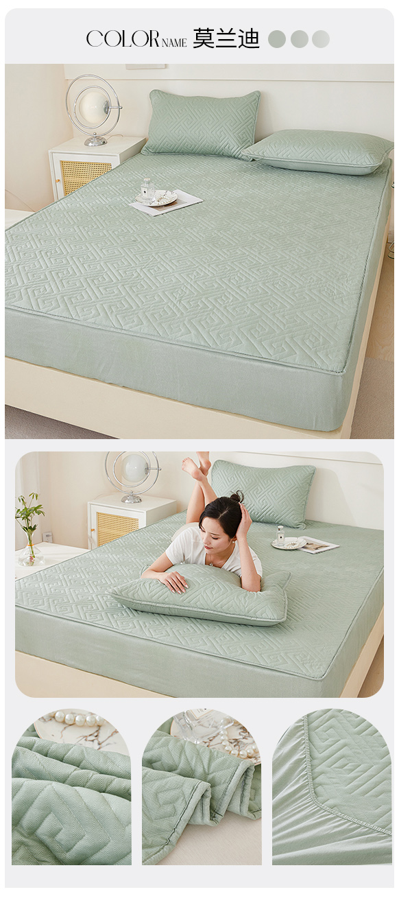 商品名称:茉保家纺 2024新款加厚磨毛回形格夹棉床笠 莫兰迪
