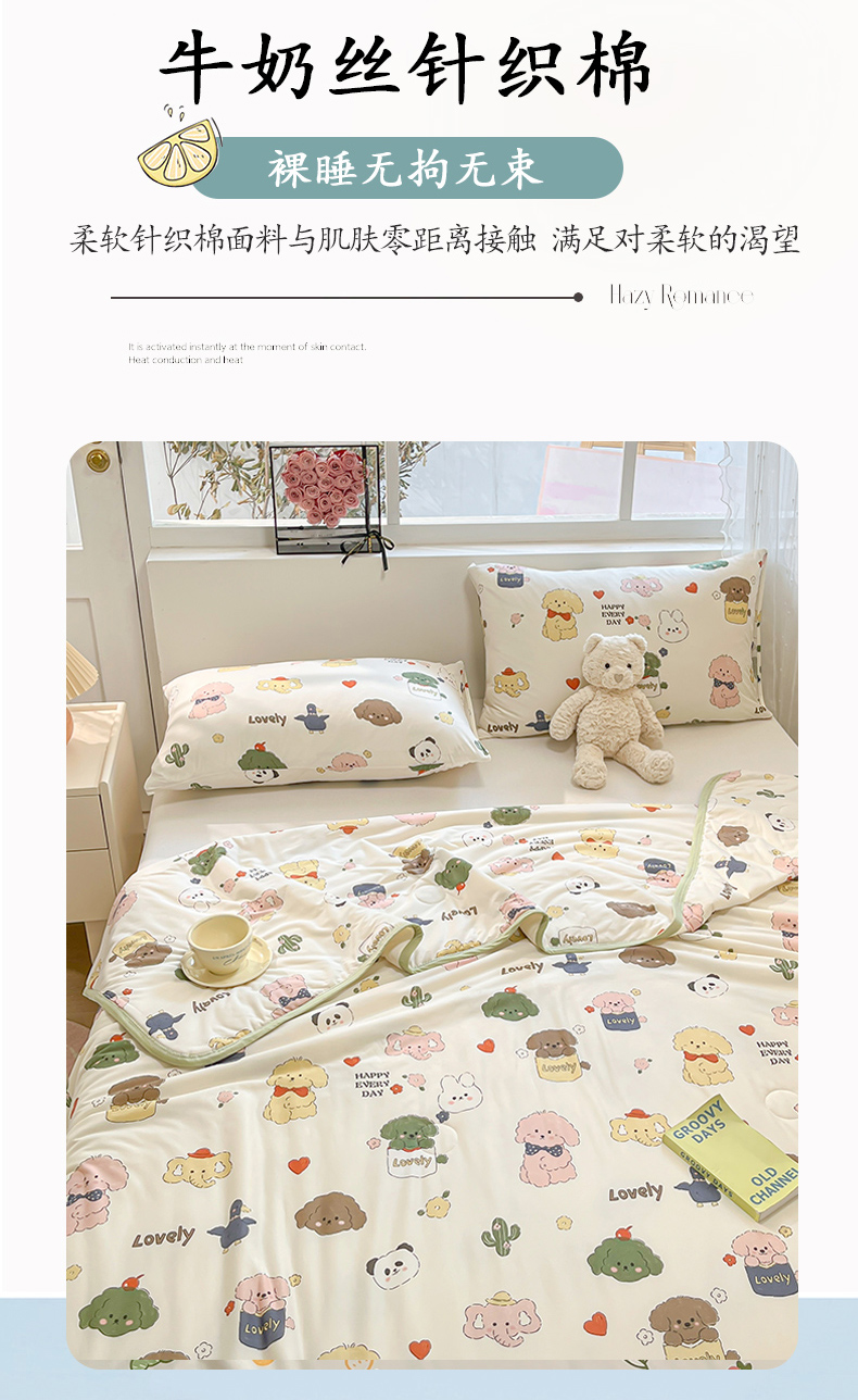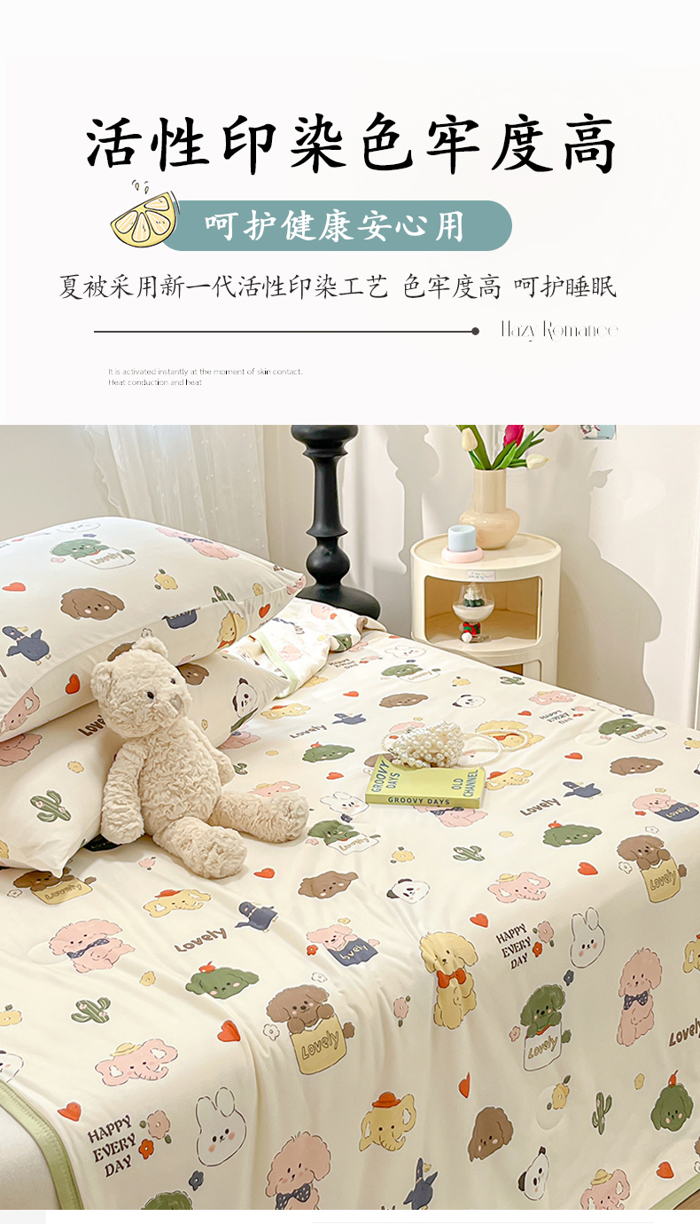 (总)葡萄家 2025年A类数码印花冰淇淋凉感冰丝凉席夏被夏凉被空调被,布丁猫,动物乐园,飞天女警,可爱小动物,腊肠狗,兰格粉兔,兰格猫猫,露比,猫小白,奶牛纹小新,牛仔猫猫,甜甜圈兔兔,星心猫,休闲时光