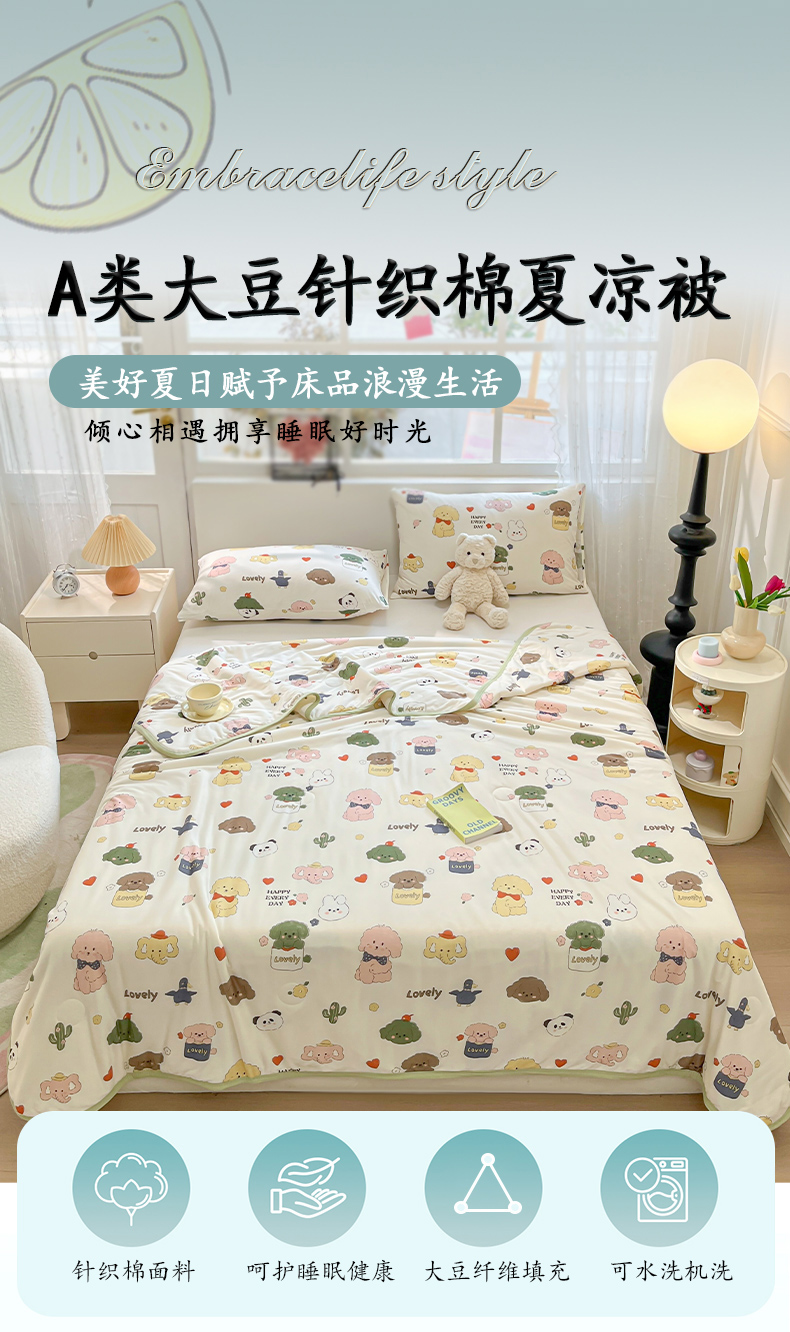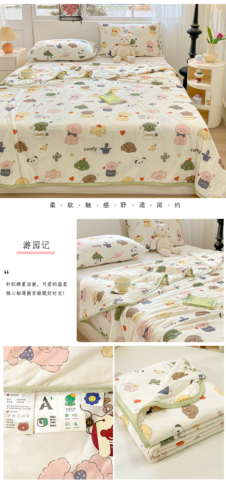 商品名称:葡萄家 2024新款A类母婴级大豆纤维牛奶丝针织棉夏凉被 游园记