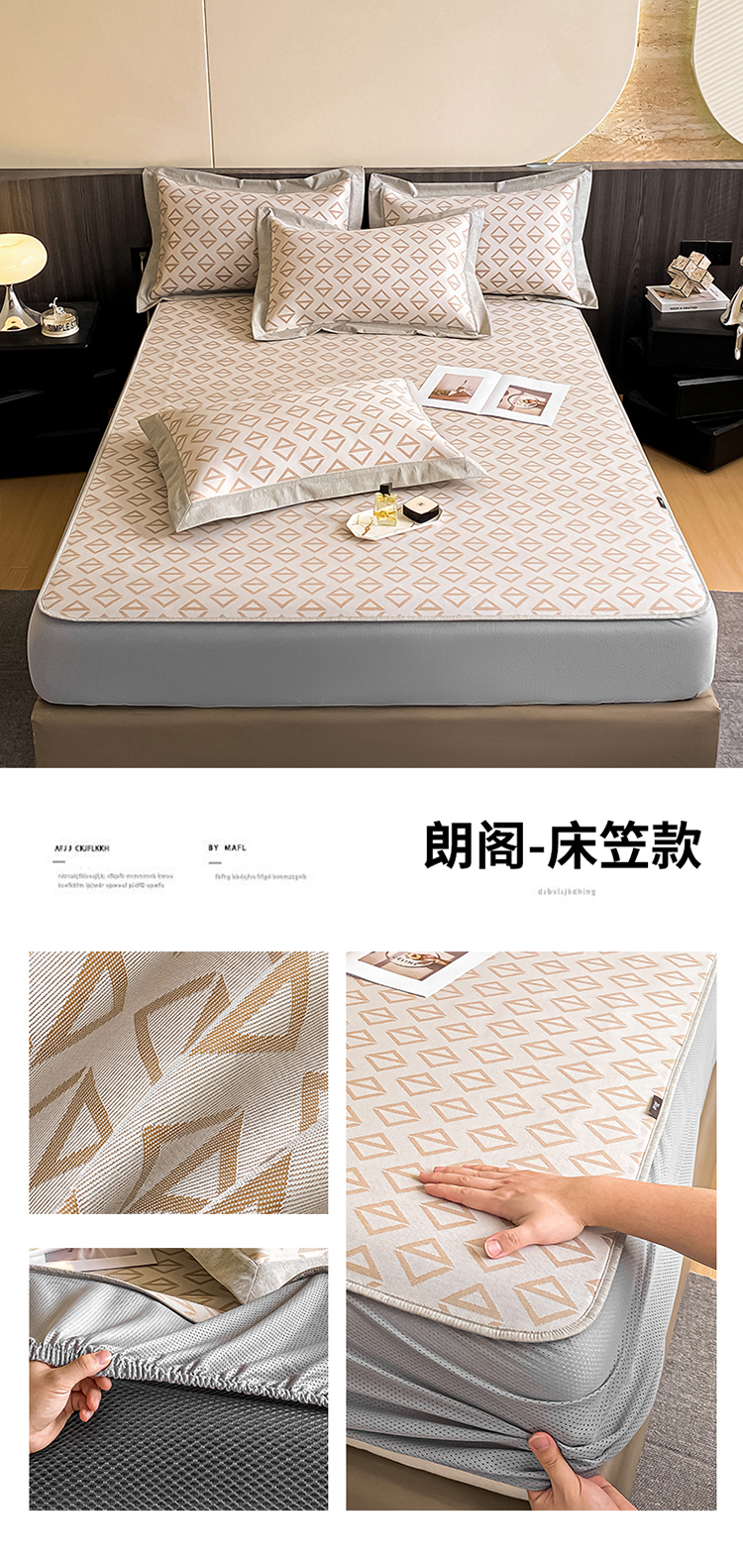 商品名称:三味舒屋 2025新款轻奢主义抗菌防螨凉感提花冰丝养生席床笠款 朗阁