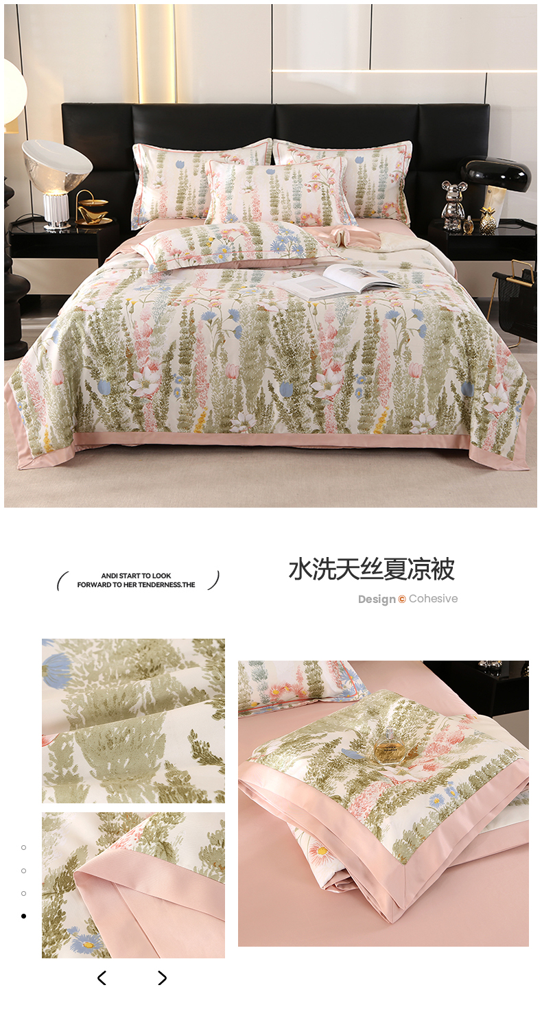 富之航家纺 2024新款拼角宽边水洗天丝夏被四件套 炫彩