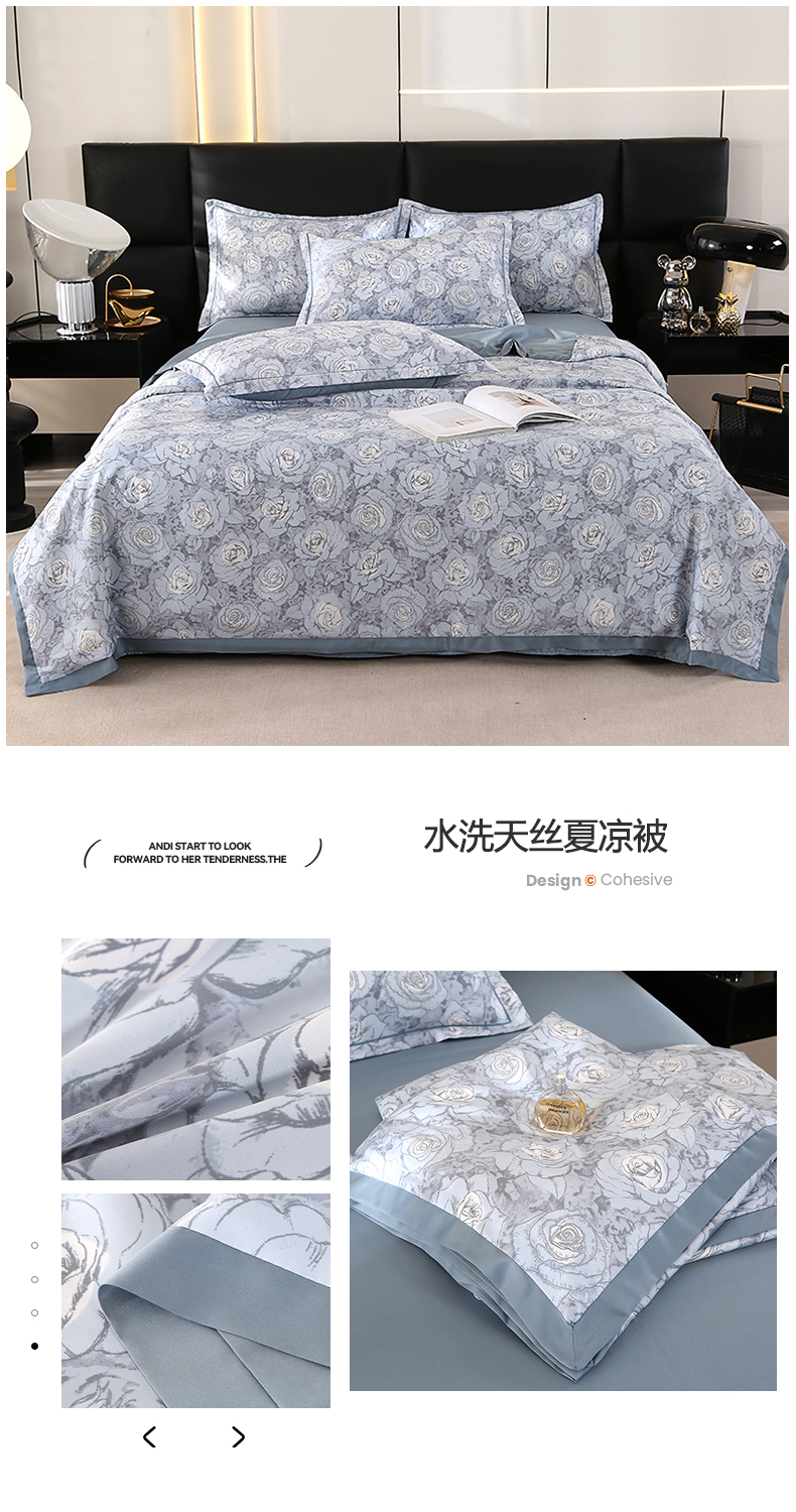 商品名称:富之航家纺 2024新款拼角宽边水洗天丝夏被四件套 玫瑰灰