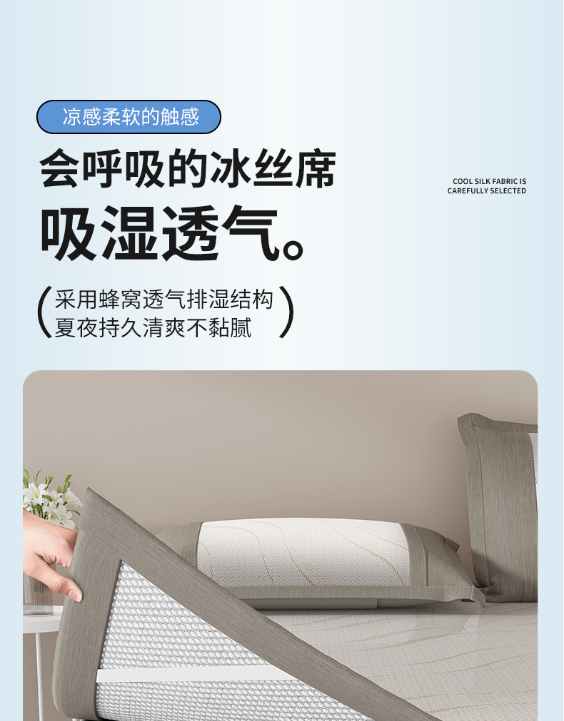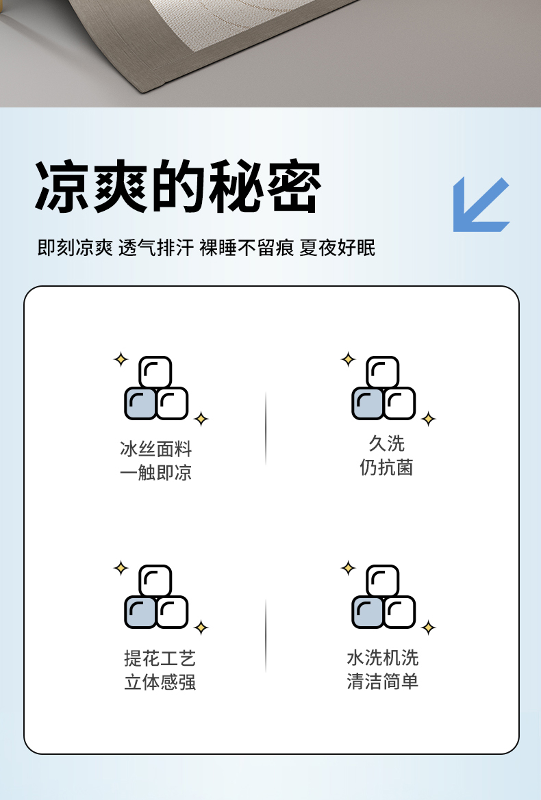 当前位置: 91家纺网 > 商品网购 > 床上用品 > 凉席 > 其他凉席 > 伊被源 2024新款抗菌水洗绣花冰丝席--波澜 波澜-冰幻咖