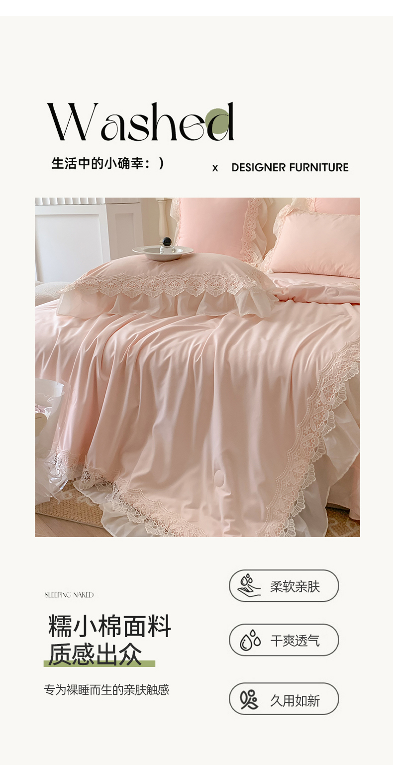 (总)吾欢心 2026春夏新款古法水洗仿棉韩版双层花边四件套,KT猫,斑马,彩色蝴蝶结,卡通小狗,可爱星星人,萌宠宝贝,秘境花园,奶萌小狗,田园趣味,汐颜,小草莓,樱桃派