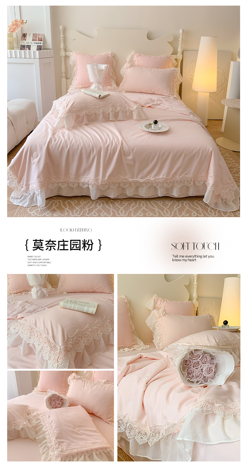 商品名称:吾欢心 2025新款亲肤舒适夏被四件套-莫奈庄园 莫奈庄园粉 夏被四件套
