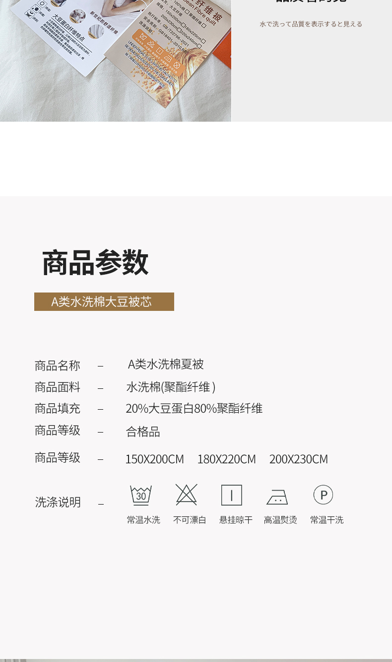 商品名称:帕芬鸟家纺 2025新款A类冰豆豆水洗棉夏被 米白色