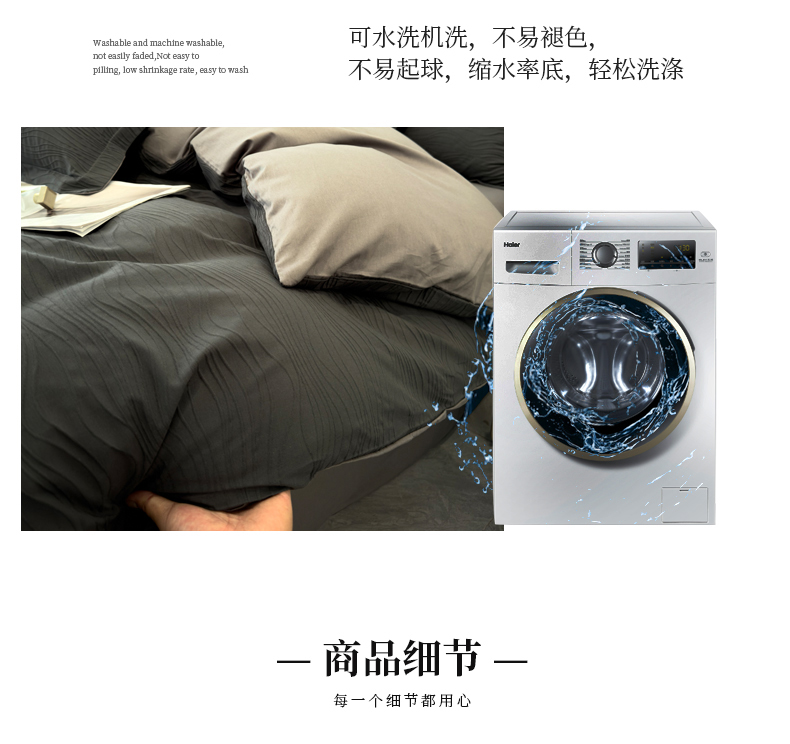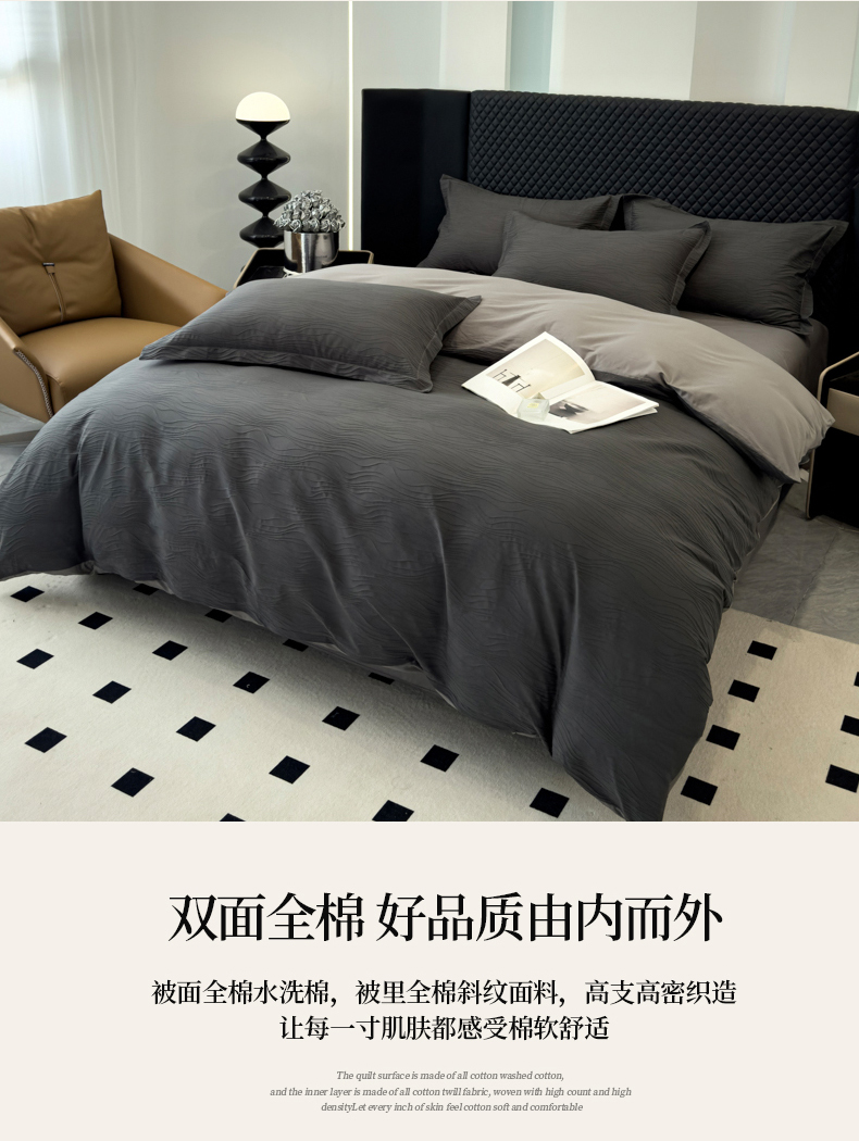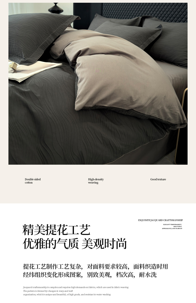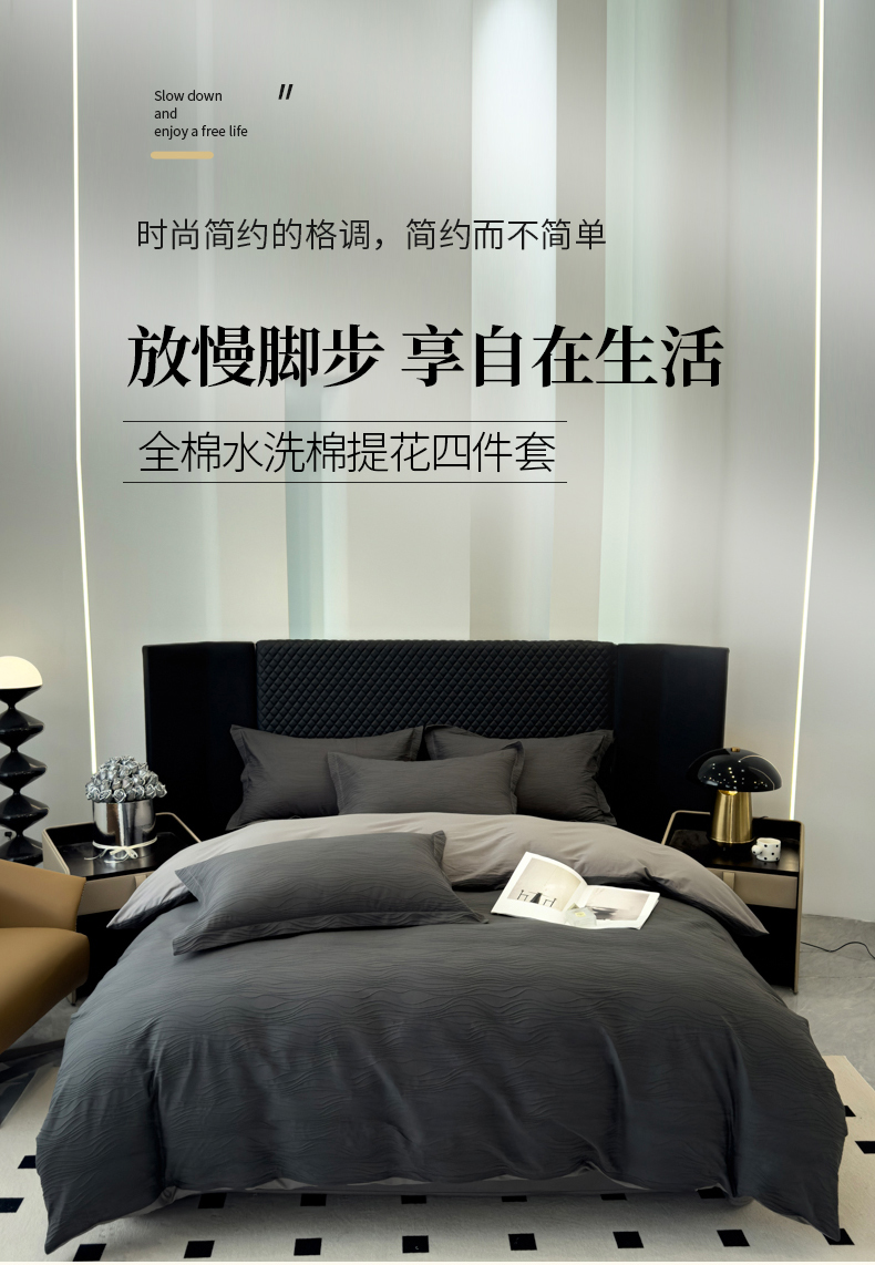 商品名称:金丝鸟家纺 2024新款全棉水洗棉提花四件套 水漾 黑灰