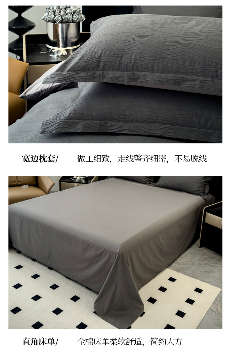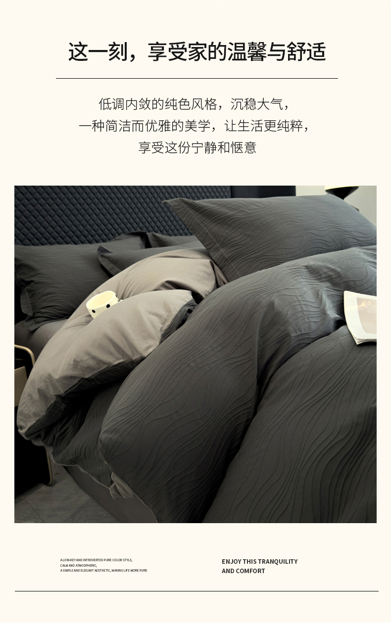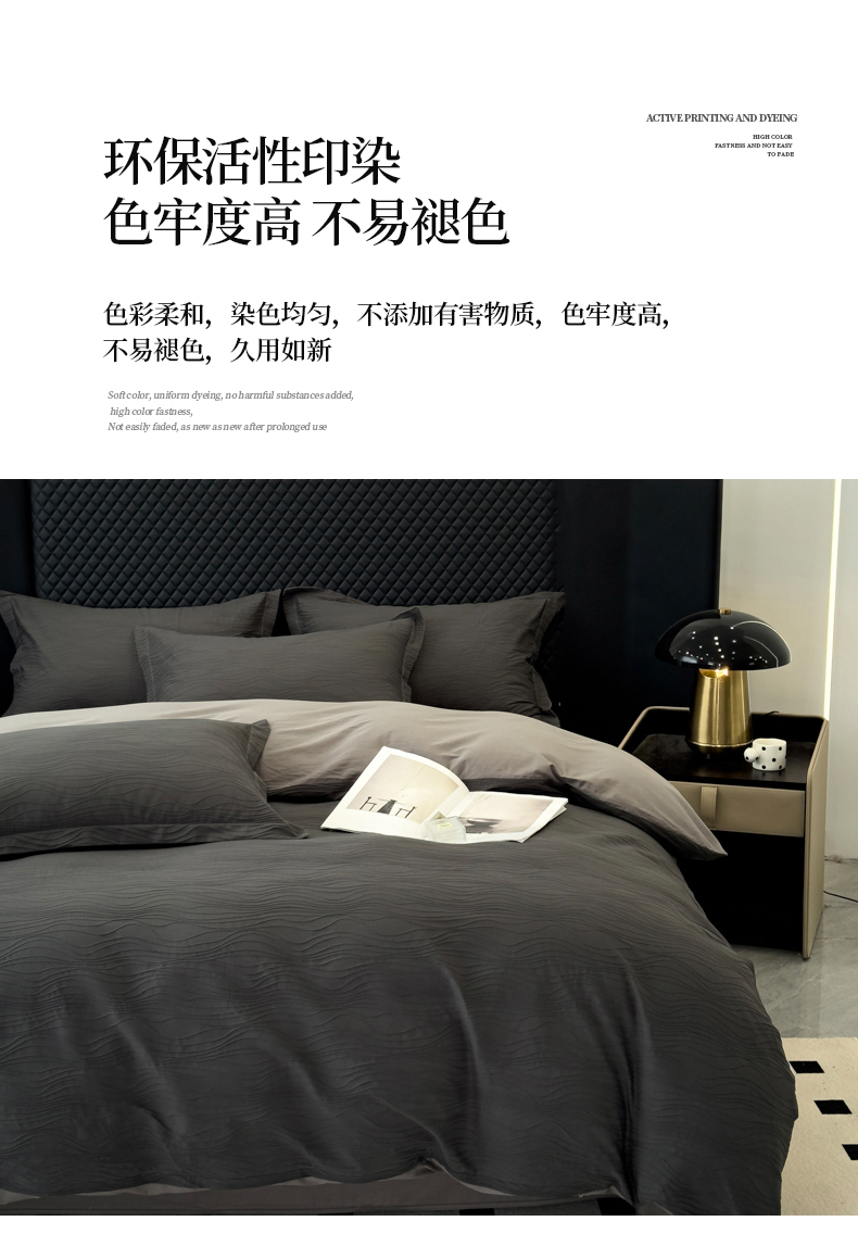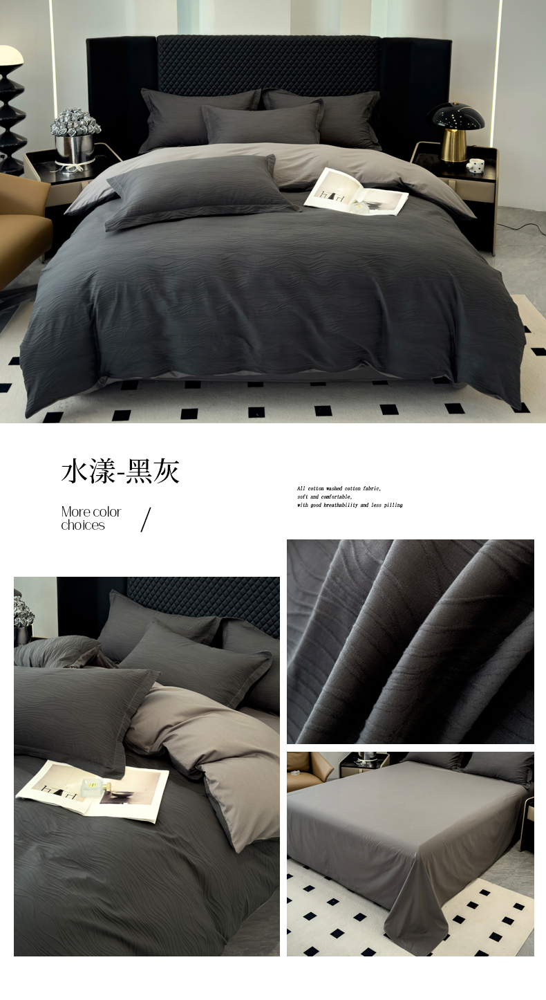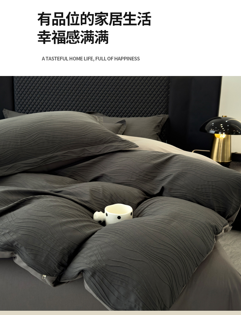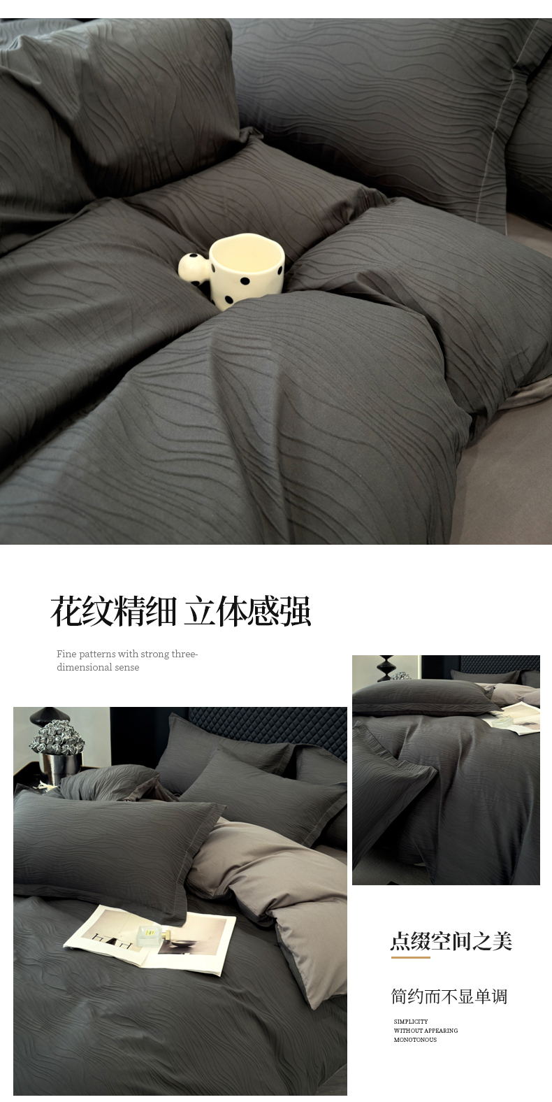 金丝鸟家纺 2024新款全棉水洗棉提花四件套 水漾 黑灰