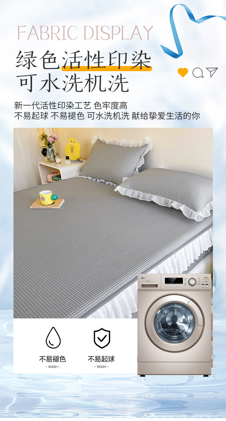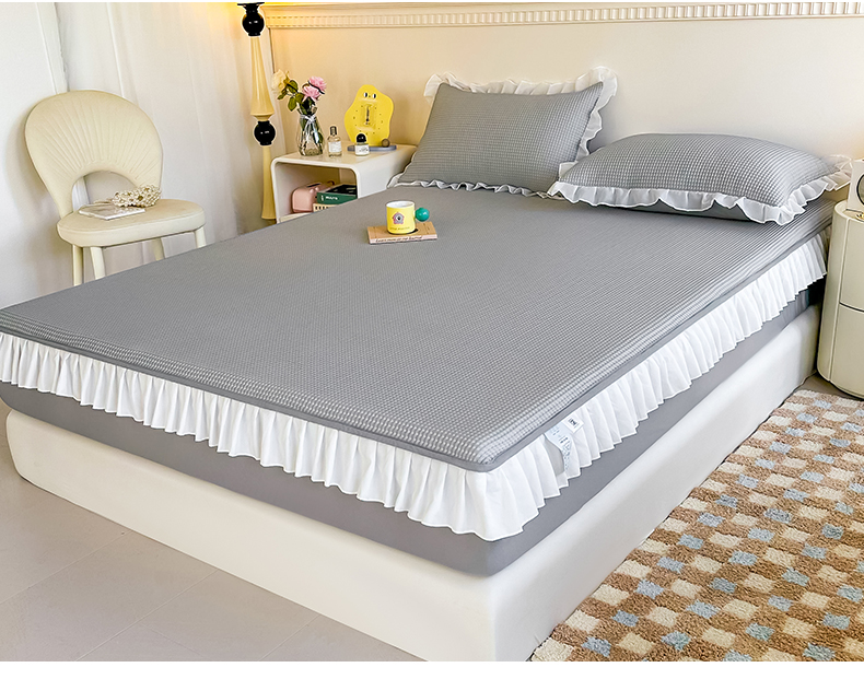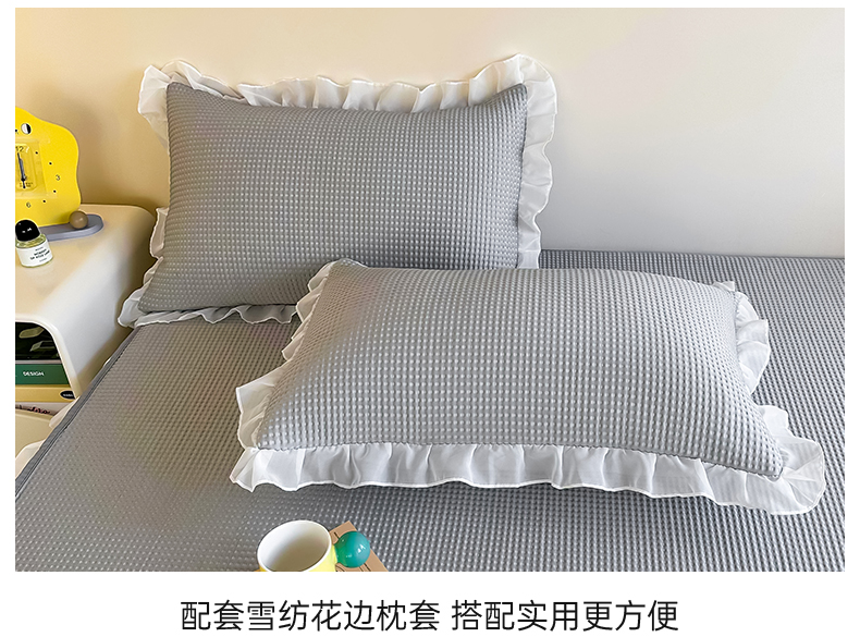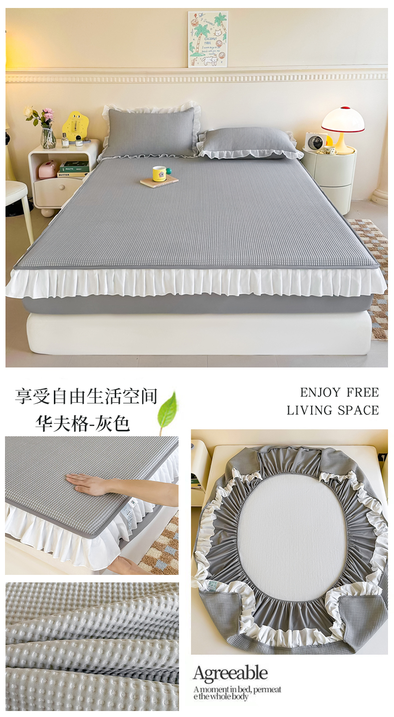 屹成家纺 2024新款PE高分子凉豆豆冰丝凉席床笠款 华夫格-灰色