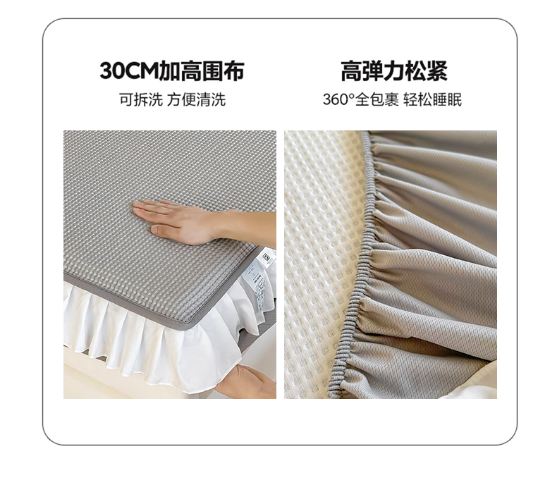 商品名称:屹成家纺 2024新款PE高分子凉豆豆冰丝凉席床笠款 华夫格-灰色