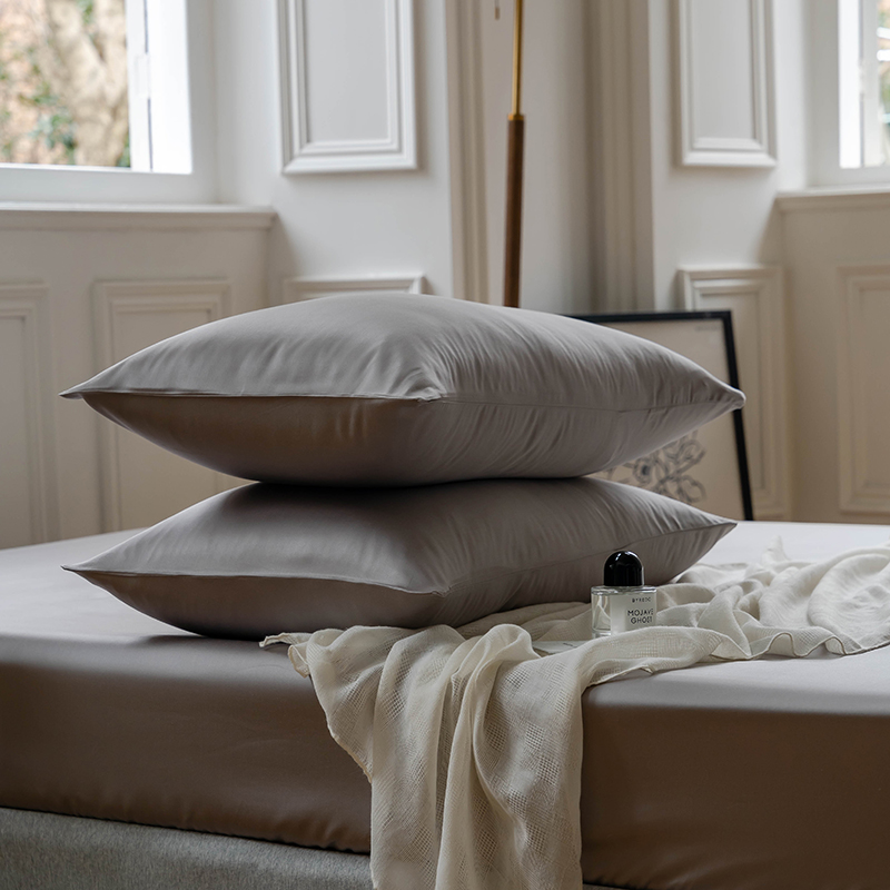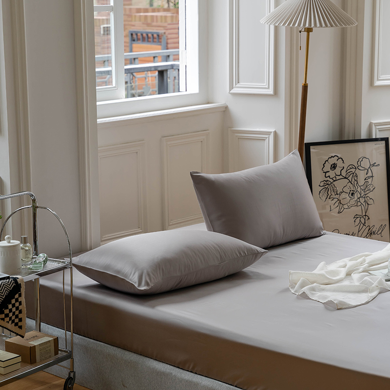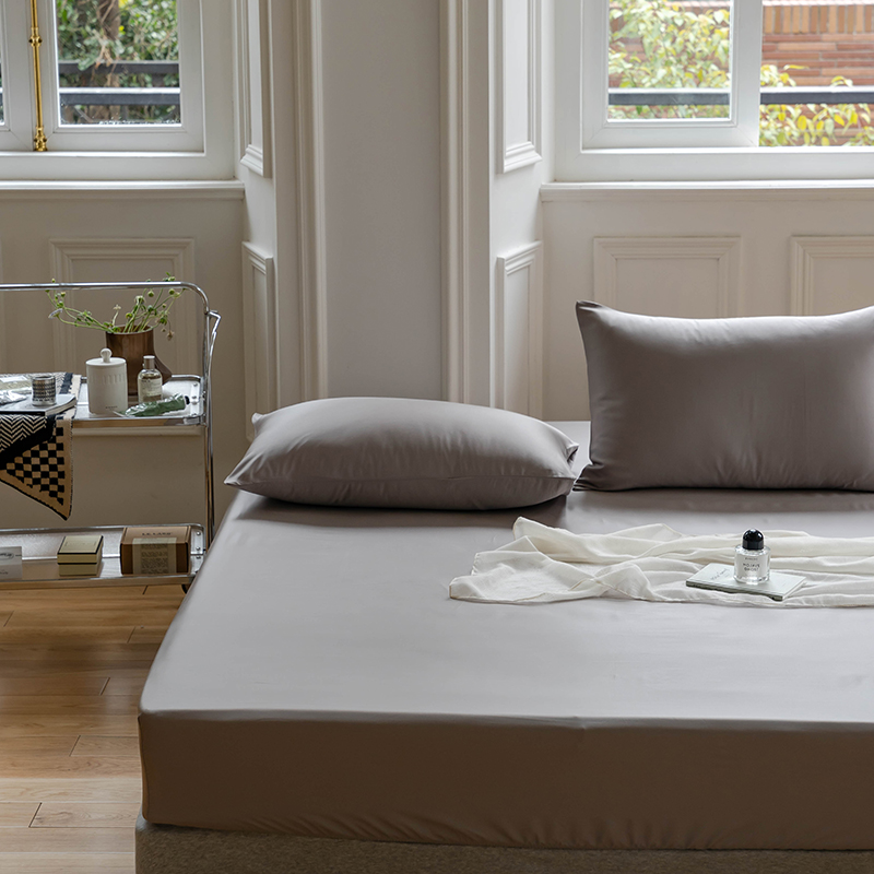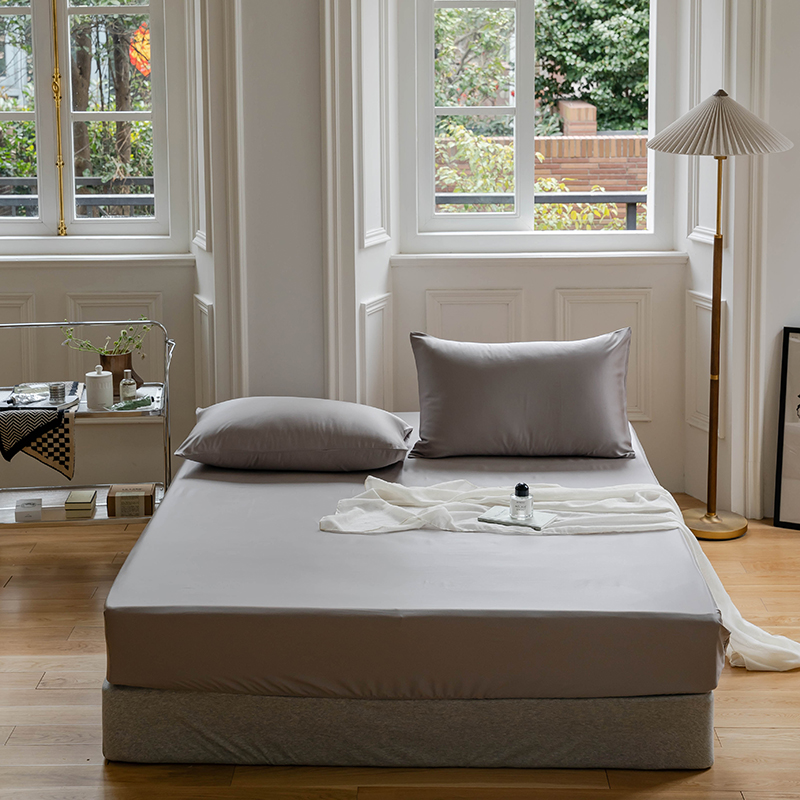 沐晴家纺 2024新款60兰精天丝纯色双拼单床笠 岩石灰