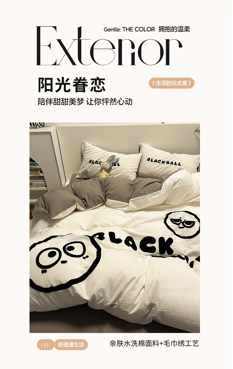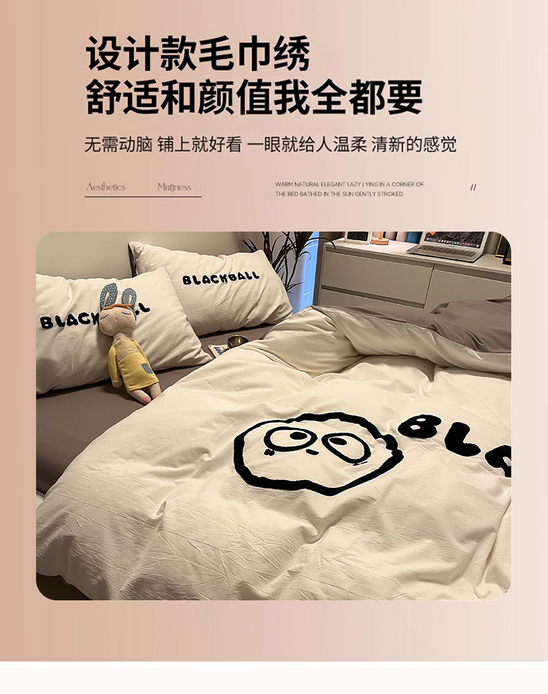 当前位置: 91家纺网 > 商品网购 > 床品套件 > 四件套 > 水洗棉四件套 > 眠帛家居 2024新款水洗棉毛巾绣四件套-煤球系列 浅灰