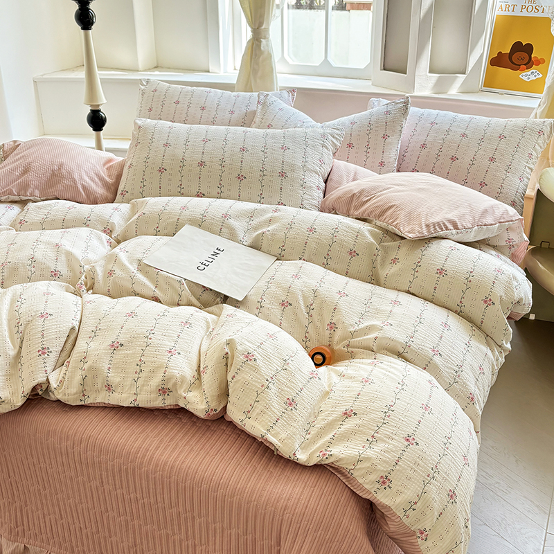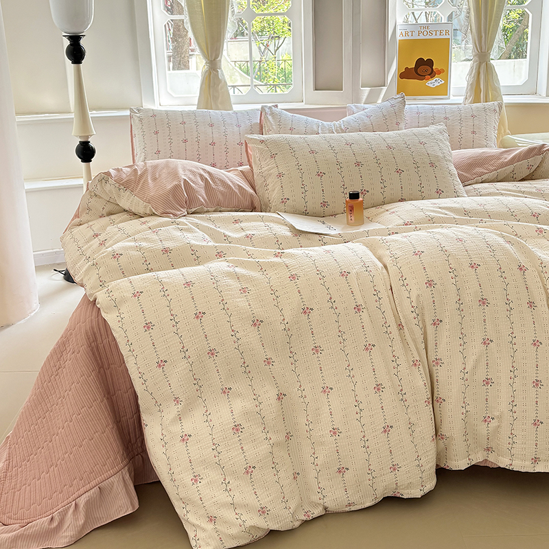 满座家居 2025新款亲肤舒适小清新泡泡棉提花床盖四件套 沐歌